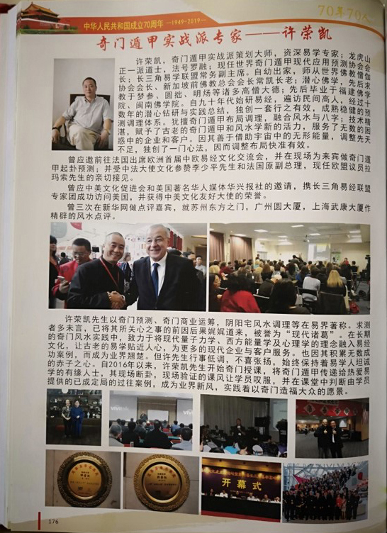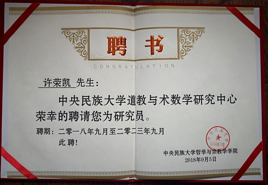 多年的风水实践,让许荣凯老师积累了极为丰富的实战经验,也获得了一大批大型企业或集团公司客户,赢得了企业与客户们深深的信赖。也为他赢得各项荣誉。2014年许先生被聘为上海易经研究会会长,2019年被中央民族大学哲学与宗教学院聘为研究员。