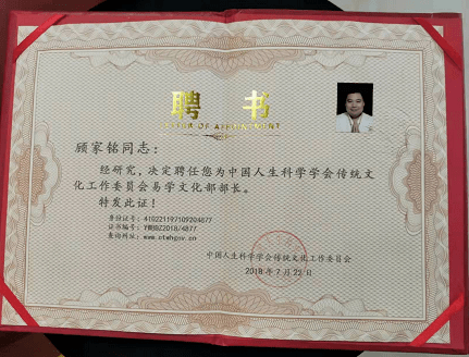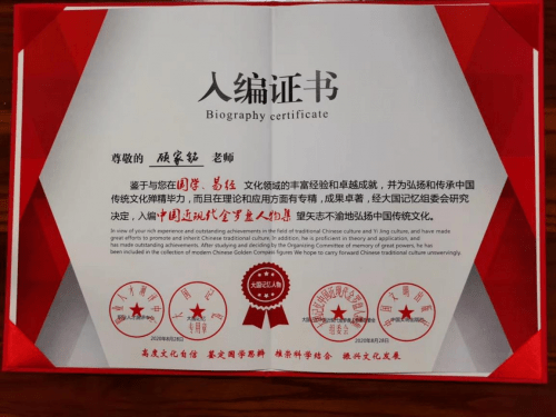 为了弘扬中华五千年文化精髓,构建和谐社会,发展文化生产与教育,使国家更加富强,更加和谐。国有雨顺,风调之泰。神通无碍,威德难量,四民瞻敬,中华祖国的风彩。在此特别报道一期易学名家。 顾家铭老师简介: 2021年被评为 中国易学泰斗 中国人生科学学会 传统文化专家委员会 首席专家 中国专业人才库全国心理学考评管理中心: 中国首届易理学专家; 教育部中国科学学会易学文化部 部长; 易学心理高级指导师; 中国著名实战易学家; 高级易学指导师; 易坛德厚风水集团 开创人; 《易道魂 乾坤风水》 易学精英联合会 会长; 易坛德厚 百业联盟 万企联手 发起人; 世界华人实战风水专家; 城市布局, 企业布局, 办公室布局, 大助:姻缘美满、身心健康、家族兴盛、事业辉煌…… 周易高级预测师; 杰出预测学专家; 周 易 高 级 堪舆师; 周 易 高 级 风水师; 易坛德厚 易道魂 乾坤风水研究院 院长: