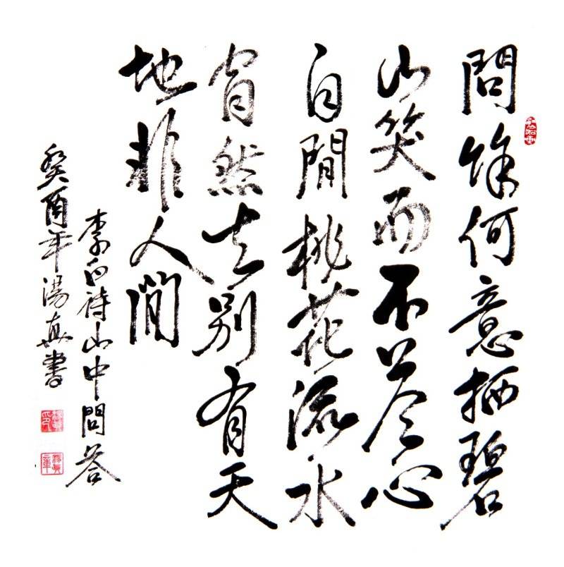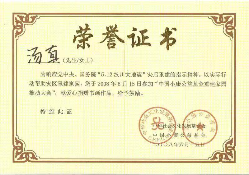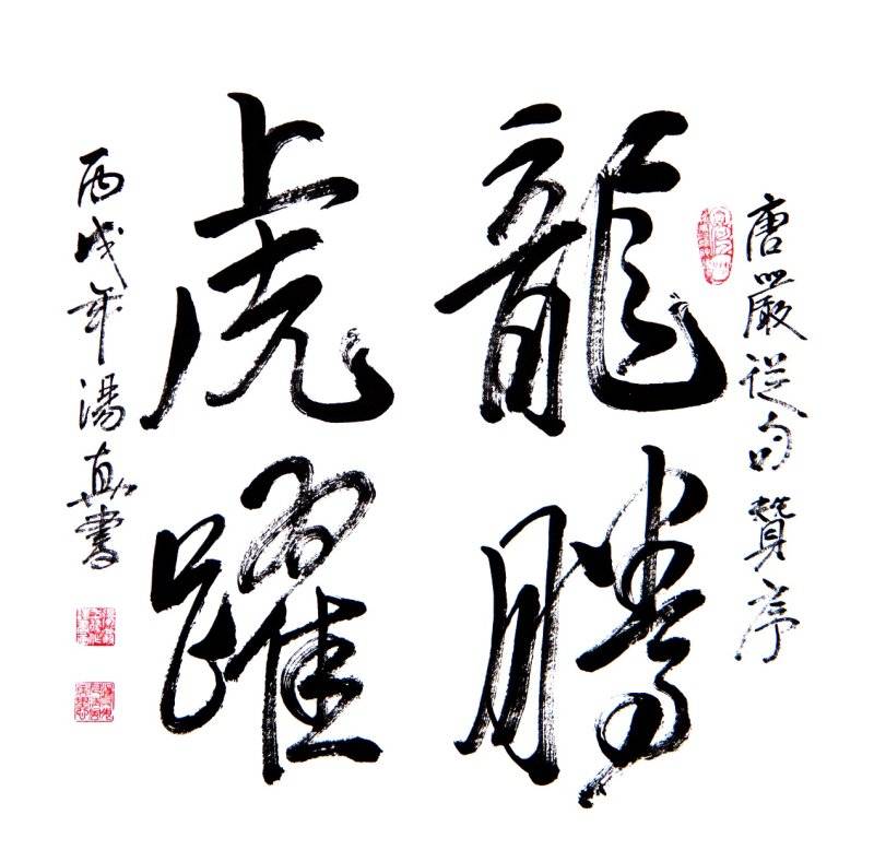 汤真 斋名:硕源斋。1938年生,武汉黄陂解放村人,1961年毕业于鲁大。国际书法巨匠、一代书圣,书坛巨擘,国礼艺术家,中国艺术大家,一代巨匠,人民功勋艺术家,书法教授、书法评论家、兼长诗文、版画、收藏家、文艺活动家、湖北汤真书画院院长、国礼书法家、世界知识画报艺术顾问、中国文联神州杂志社艺术顾问,中国影响力杂志社美术总监、原CCTV瞭望天下栏目监制(总部专家)、曾多次赴日等地区进行讲学,展览辑集出版等文化交流活动;为奥运会、世博会、残疾人、灾区捐赠大量的书法作品;为家乡多种公益事业捐赠国礼书法作品。题词镌刻于全国各地名胜古迹及匾额。在国内外享有较高的声誉,书法作品多次入选国内外重大的书法展览及在多种报刊发表,《人民日报》、《中国书画报》、《中华儿女》、《中国影响力》、《世界知识画报》、《羲之书画报》、《中国书画美术报》、《北京日报》、《宜昌日报》、《湖北日报》等报刊,被国内外友人或美术馆、博物馆收藏,多次参加国内外书法展并多次荣获艺术权威奖,被列入各种名人传记与辞书,《中国当代书画名家大词典》、《中华当代书画艺术名家典藏》、《国史人物大辞典》、《形象大史艺术经典》、《艺术典范》,《盛世中国美术家大典》;书法作品已出版《汤真书法精品选》、《汤真书法作品集》、《汤真书法1-6卷》、《当代书法家精品汤真卷》等书籍。原黄河小浪底对外工程局副局长,高级工程师。为中国艺术品投资交易获准上市的艺术家。中央电视台曾多次专访报道。