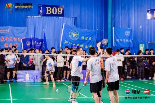 在开幕式上,福州市羽毛球协会秘书长宋希平先生表示,赖茅杯高校校友挑战赛是一场充满激情、友谊和竞技精神的盛会,可以让更多的高校校友能够参与到羽毛球这项运动中来,感受羽毛球的魅力。作为中国国内羽毛球运动的发源地之一,福州见证了林丹、谌龙等世界名将的成长。2023年赖茅杯高校校友挑战赛再度来到福州,收获了大批校友关注,自报名公告发布到名额爆满历时不过半天,反响热烈。比赛采取混合团体赛制,每个团体赛由2个男子双打、1个混合双打共3个项目组成。昔日搭档,今朝再聚,多巴胺升腾,荷尔蒙弥漫,球馆内随处可见观众席上为队友加油呐喊的声音和场上校友激烈对战的身影!在双方你来我往的拉锯战中,一个个羽毛球凌空飞舞,绝妙的吊球、灵活的走位,每一场拼搏是忘我的投入,是彼此的默契,是对搭档的放心托付。
