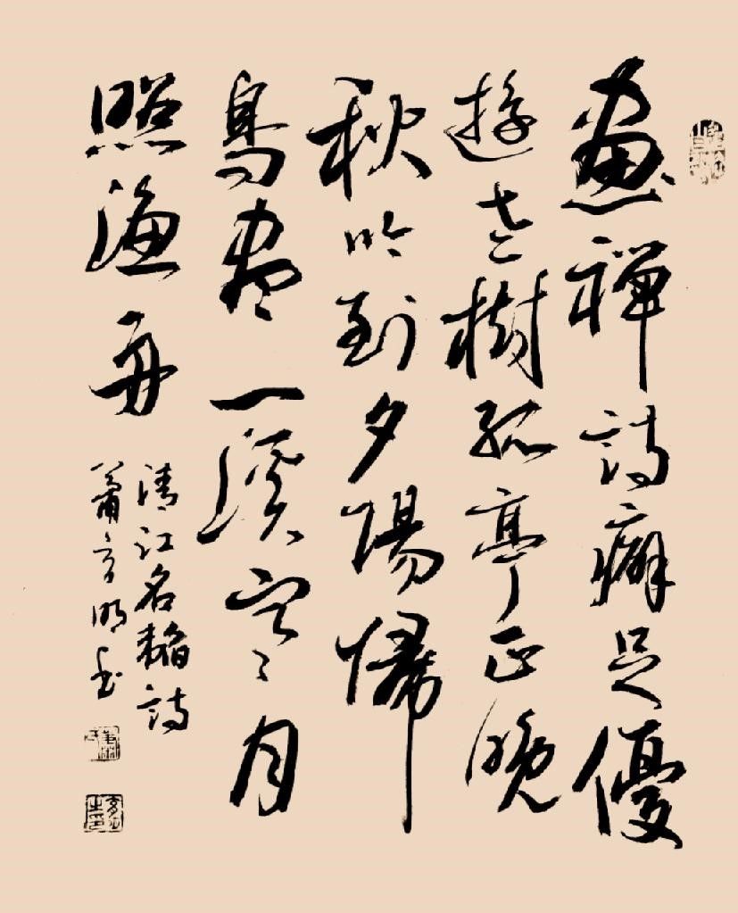 戴叔伦诗《苏溪亭》(释文苏溪亭上草漫漫 谁倚东风十二阑 燕子不归春事晚 一汀烟雨杏花寒) 所以说萧育明先生的书法写得潇然洒脱,天质自然,也是非刻意创作书法的结果。如果书法家硬端着架势去创作书法,哪里会有这种飘风骤雨惊竦竦,落花飞雪何茫茫的丰姿多神呢?纵观他的草书创作,绝不写有失法度的江湖体,也不写骄揉造作的展览体,就是兴来执笔依书抒情的文人书法! 在须臾扫尽数千张的过程中,把书法的书卷气息酝酿得相当到位。适性切意写草书,必是万法皆谬,心自得之的痛快! 从书法有法的磨砺,到书法无法的突破,让萧先生的书法晋升到一个相当高的层次,就是不做书匠也不作书奴的水准。笔墨既师于法帖,也随于时代,所以他的书法总是令人赏心悦目,在圈里圈外荣享口碑,高级别的获奖就不在话下了,还有一些作品因为品质好品位高,被国家博物馆、美术馆等国家机关和知名收藏机构收藏,在艺术拍卖市场也屡传佳迅,让他书法得到高段位收藏的认可,又得到了市场的眷顾,达到这样的水准,就是真实不虚造诣不俗的鉴证!