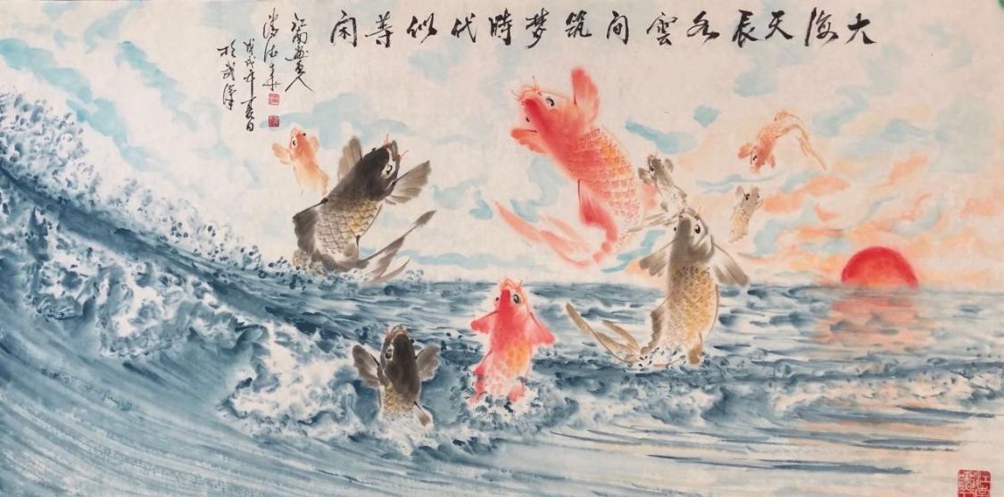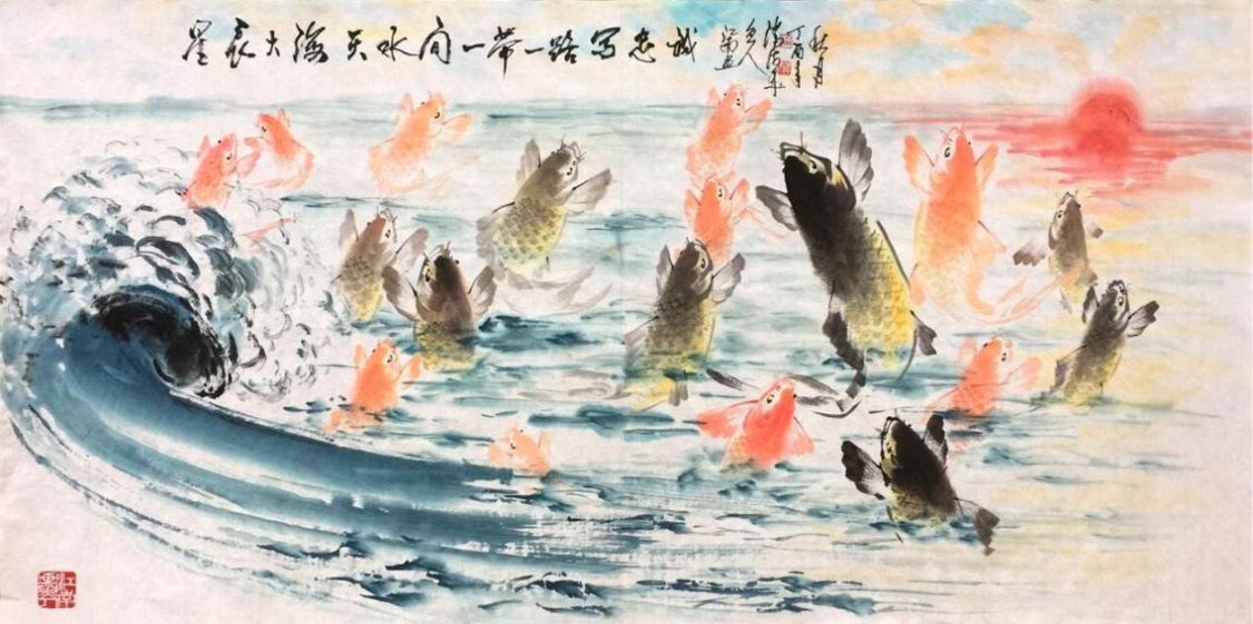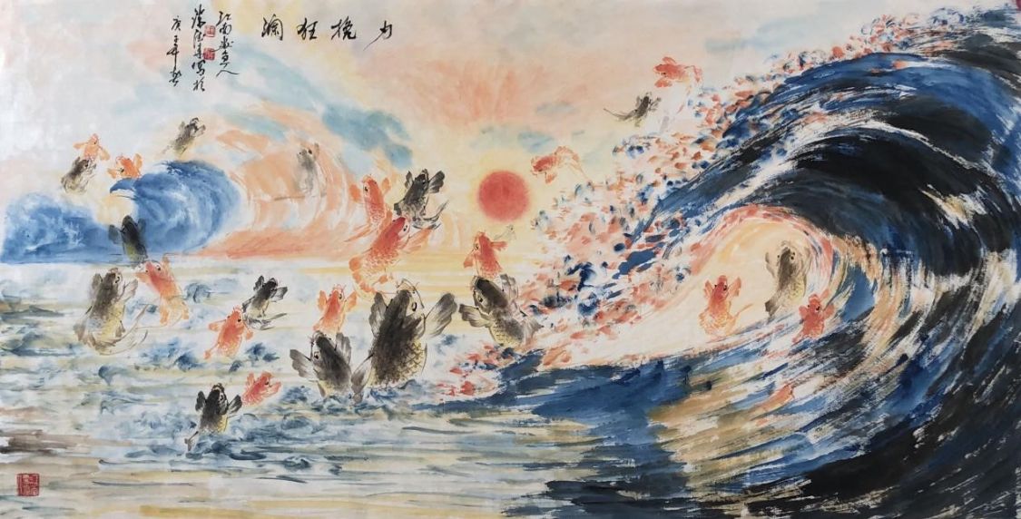 时代丹青醒来功,鱼跃沧海主旨成。德艺双馨功名成,在丹青修行的道路上,潘德来始终是一位有情怀,有理想,有追求,有抱负的艺术家,他的丹青之技可为典师,他的丹青主旨更需仰望。大家风范,历历可观!