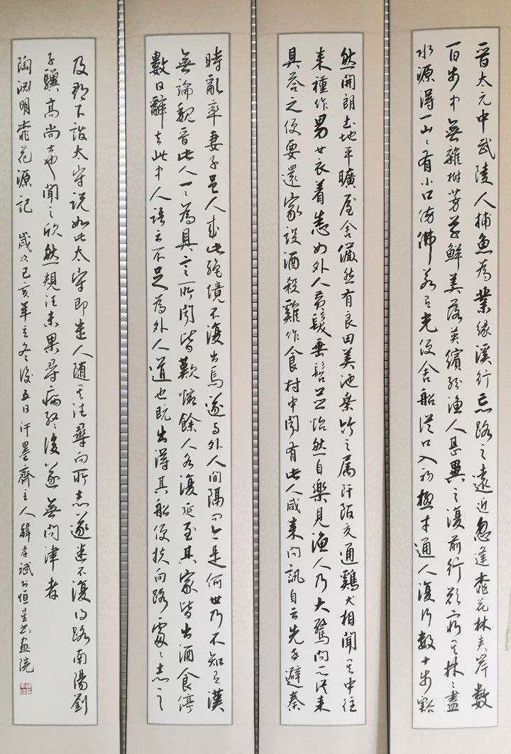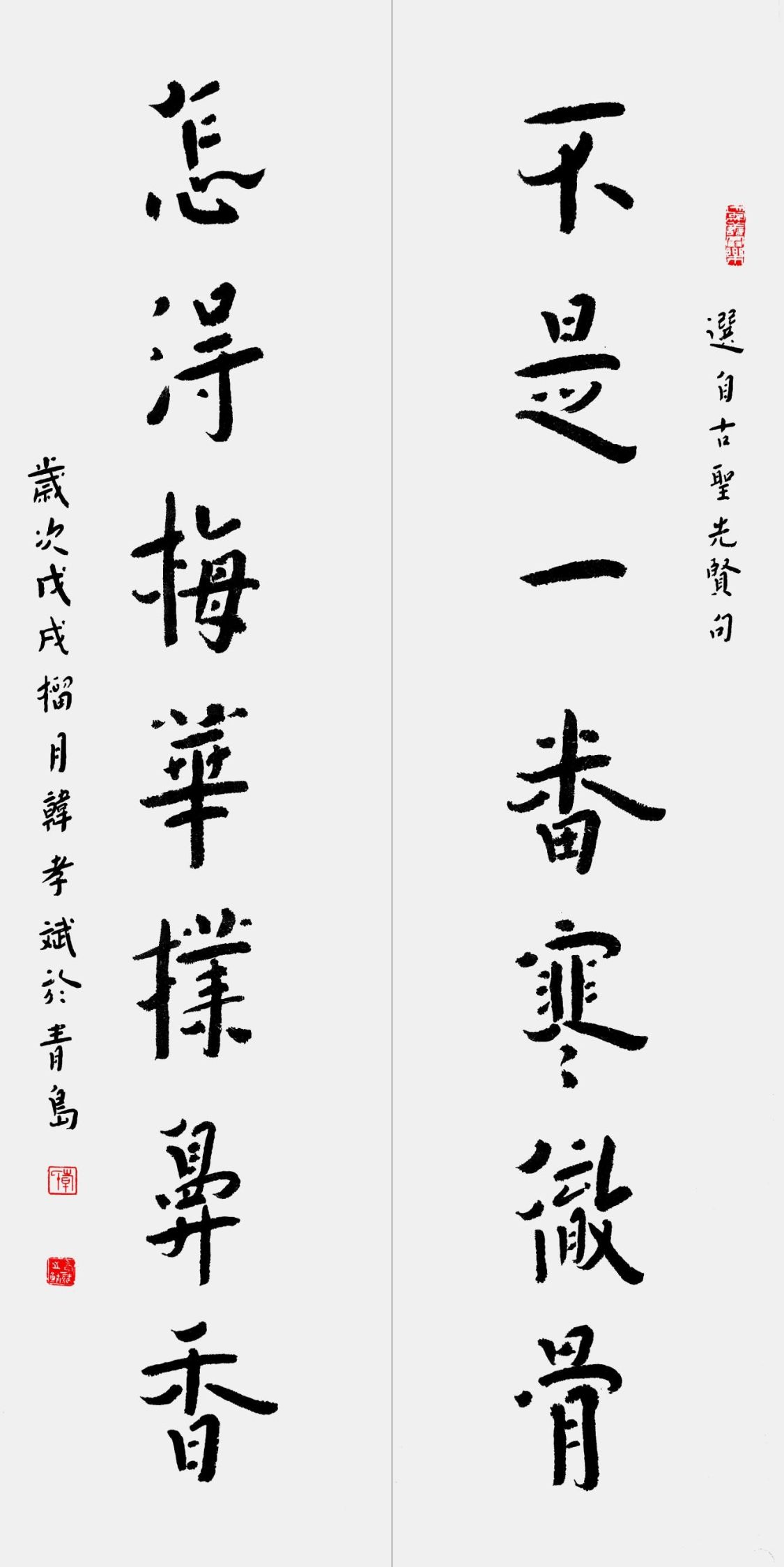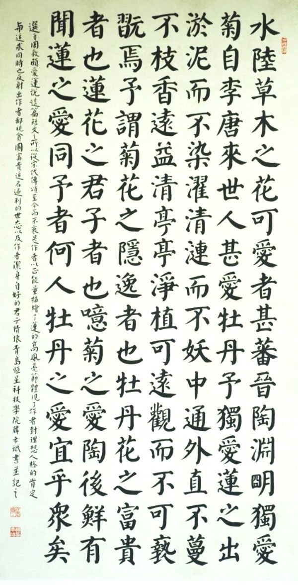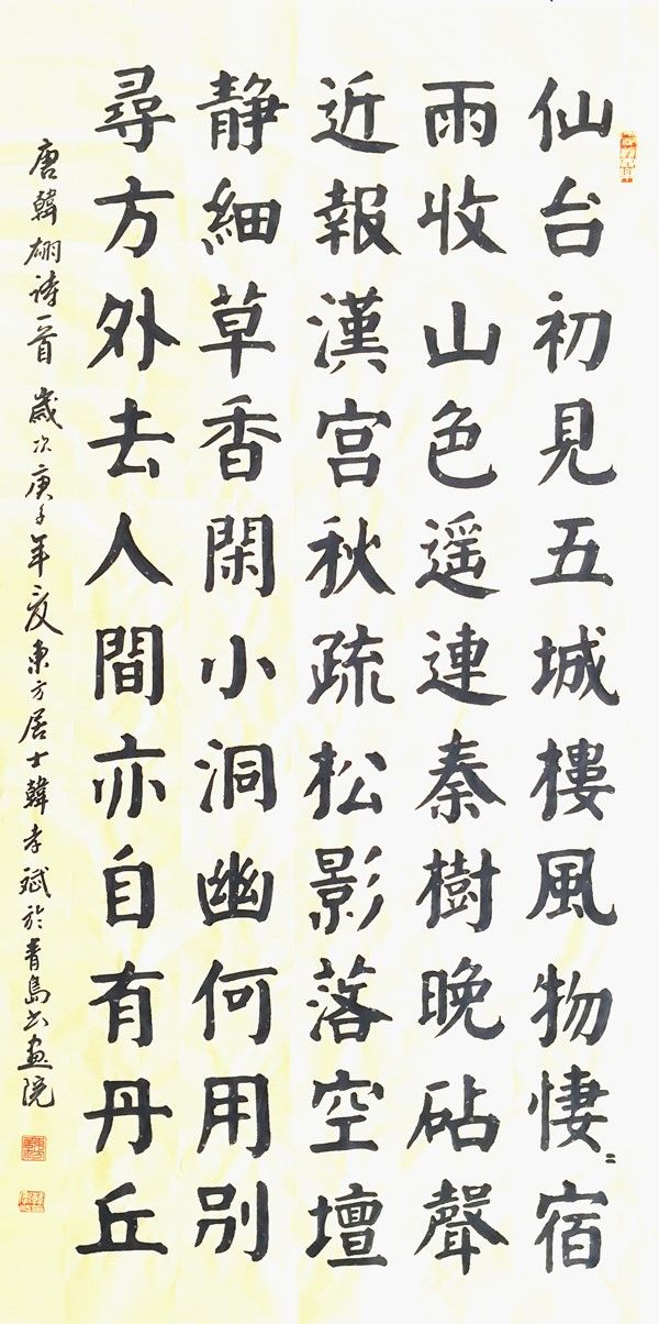 韩孝斌作品赏析 功习颜楷 丰神草书 ——记著名书法家韩孝斌 苏东坡论文化人物,把诗第一给予了杜甫,把书第一给予了颜鲁公!何以故?颜公忠肝义胆,把书法写出了正大气象!当代书法习成,应该像著名书法家韩孝斌先生这样,对颜楷进行精湛入微的琢磨,然后得其形,会其意,在起笔落笔之际复作翰墨显精神的正大气象!韩先生磨砺书法,不但尽取于法,还重视领略书家的德操,把书法当成一场修行,韩先生做得很到位,表达得也很精彩! 韩先生习唐楷,取颜公诸碑,经由春秋不辍的琢磨,把麻姑仙坛记、颜之推碑、颜氏家庙颜、多宝塔笔都进行了一一参悟,可谓是沿袭了颜真卿书法从初成到终成的全程路径,是一位在当代书坛写颜楷法不欺人,功不欺世的贤德!