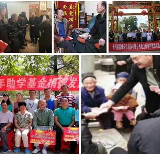 在党的领导下,贵州晶瑞环保清洁有限公司发展越来越好,我作为一个公司的老总,有责任和义务,为山区小朋友的健康成长作点有益的事情。虽然这些年来农村发生了变化,但农村的留守儿童和空巢老人较多,成为人们关注的社会问题,于是我公司每年在儿童节时,都要组织员工,向边远的村校学生送去书包和文具用品,鼓励他们好好学习,天天向上,还和他们一起照像,特别是困难的学生,我们还给予一定的资助。同时,给同学们讲述红色文化的故事,在他们幼小的心灵播下敬畏英雄,热爱祖国的种子。每年的老年节,我们也为那些空巢老人送温暖的被子和尉问金,让他们享受晚年的幸福!