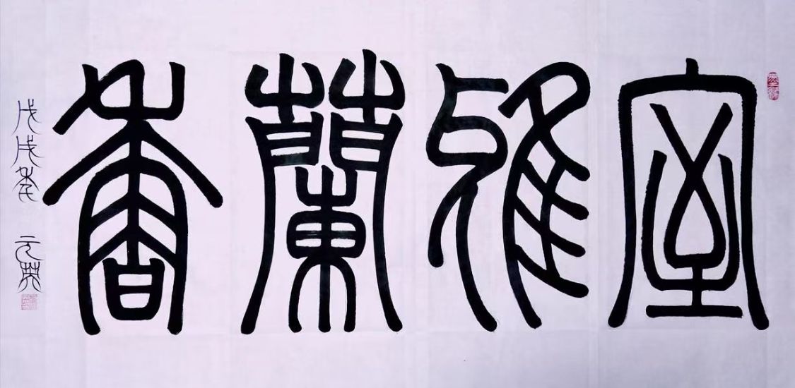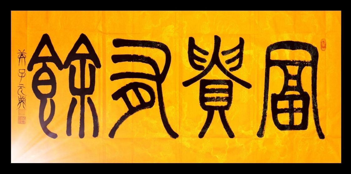 董元英女士的篆书着重于书法中的空灵、内涵和哲理,以其所蕴涵的艺术精神,将传统特点,时代特性,还有个性巧妙地相互融合,渗透其文字性、内容性、文意性等方面。将线条以立体结构呈现,通过视觉光影,最终形成的效果,极具传统浮世绘的审美趣味。可以看出,董元英女士的书风很正、很大气,纯正的气息中透露着典雅俊逸的风韵,渗透着一股端庄之美和荡气回肠之意。以字作骨,意作魂,意随心到,笔随意动,其注重线条质感与形态的变化,使之形成不可分割的整体,最终达成意蕴与哲学的完美融合。让观者感受到神采飞扬的律动、宛转悠扬的节奏、洒脱豪迈的气魄。这是因为她在时刻追求表现当今时代的气韵、气势,以及用心灵表现在书法艺术上,秉承传统的文脉,延续民族精神,融入当代审美,站在了时代的新高度。