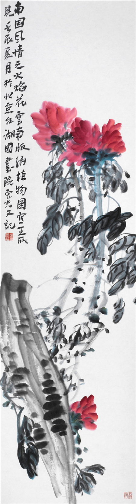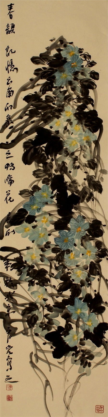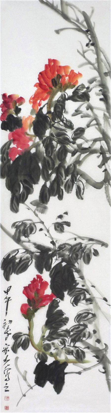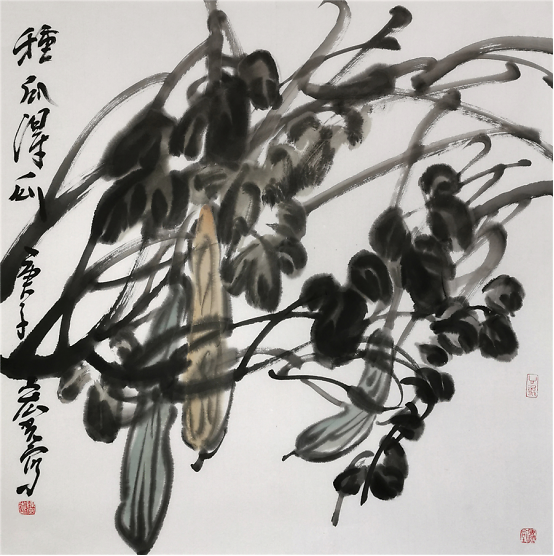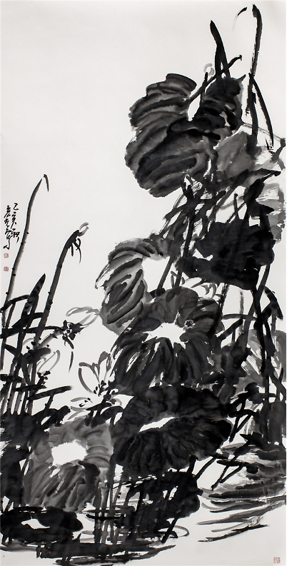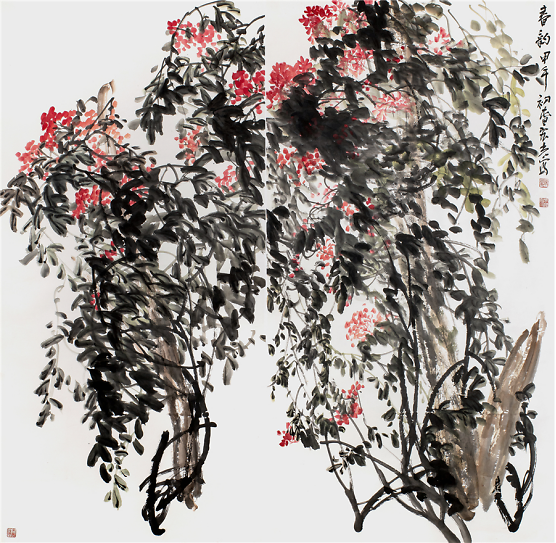 陈宏光对徐渭可谓顶礼膜拜,这不仅仅是因为徐渭是中国写意花鸟画的开山鼻祖,更重要的是他的倔强与刚强。所以,陈宏光笔下的花鸟作品豪放泼辣,水墨淋漓,一挥而就,但求神和,不求形似。他那种热烈、豪放、沉雄而带霸悍的大写意画风格,深得徐渭的传世影响。 空间、感觉和节奏。这是绘画的根本属性,离开这三条,绘画就不存在了。但是绘画又不止于此,他要有其审美的内涵,一是抒写心中之意趣,二是要有创造性,三是具有高超的技艺。