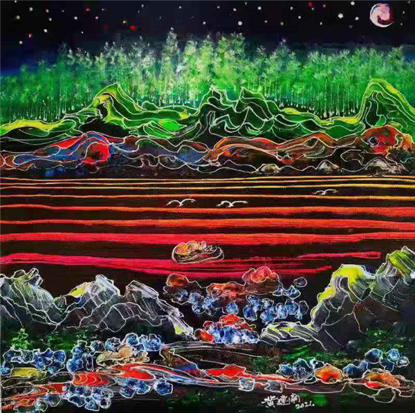 黄建南者,何许人也,怎么能和伟大的达·芬奇比侪?其实,大凡超人,皆非常人也。达芬奇最接近上帝,同样黄建南先生则最接近神,或佛祖。西安法门寺主持就曾主动为黄建南点燃一盏长明灯,就是冥冥之中,有某种默契,或有神助。黄建南的画有精神,有能量,一但诞生,就有自己的生命和气场,是一种治生生的存在,有灵魂,有骨殖,有血性。艺术无国界,这次风靡美国,征服美国,就是最好例证,也是中国元素,西方表现形式的最好表达,不同于徐悲鸿、林风眠,也不同于赵无极,是东方文化思想的西方艺术呈现,是中华文化复兴的最好表现形式,有神性,更有佛性,是知之之未知,未知之大知或先知,如永远燃烧的长明灯,就是文化复兴的希望之火。 |