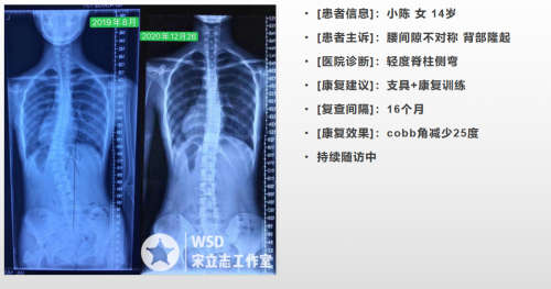 脊柱侧弯是危害我国12-16岁青少年儿童中的常见病、多发病,近年来我国中小学生脊柱侧弯的发生率呈明显上升趋势。脊柱侧弯是指脊柱正常中心轴线的侧向弯曲,同时伴有不同程度的生理曲度丧失和椎体水平旋转。其中青春期特发性脊柱侧弯是儿童青少年中最常见的脊柱畸形,但是由于发病原因不明,其隐蔽性强,无法预防,只能早期发现早期矫正,在其还没有发展到手术治疗之前进行干预,而大部分脊柱侧弯若及时发现均是可控的。