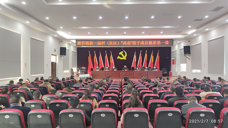 2月7日,黄营镇在镇礼堂召开村“两委”干部履新集体谈话会,镇三套班领导、定村干部、17个行政村新一届村“两委”成员参加会议。镇党委书记吉爱国将集体谈话与讲党课有机结合,并从三个方面进行培训指导。