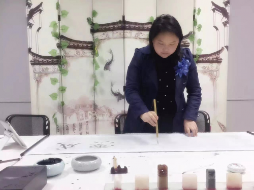 图2:鲁赞老师 她的PPT照片色彩搭配都非常精致,我们似乎坐上了游览车,跟着一位高级导游开始了有趣地旅行。比如,她介绍到我们阳明古镇的舜江楼和通济桥时,其展示的照片就有白天风景和晚上夜景,以便同学们选择出游时间,她还把最新舜江楼近期开放的消息告诉给学生们。在说到余姚鹿亭中村的白云桥时,知识点上她会告诉你此桥年代,以及白云桥还拍过电影,该影片由温兆伦主演,影片名字是同名的“白云桥”,引起了同学们的极大兴趣。她接着讲到中村每年过年组织游客进行围千宴、舞龙送福字等活动的事儿,让学生们去了解并感受鹿亭乡中村的年俗和过新春的喜庆气氛。鲁赞老师的讲述也非常注重历史文化研究成果,介绍大隐时,她会生动讲解出大隐名称的由来和大隐天下玉苑的玉文化。鲁赞老师心思细腻体贴,她告诉学生,游览景点的时间,什么时候最好,同学们怎么玩?余姚游玩山水的地方应该是夏天去,聆听山涧溪水淙淙和山中欢快地鸟鸣 。比如浙东小九寨,同学们可以观瀑布、打水枪等。鹿亭乡有着鹿亭美丽的传说,鹿亭早上可以观云海看日出,鹿亭还有观景台,是日出最佳拍照地。通过鲁赞老师有趣地介绍,有的同学说回家会要求家长们带他们去这些地方游玩的,以此体味余姚幸福城市的魅力。 非遗课堂:感受到“姚味过年” 第二天课程更精彩。两个非遗课堂,即603教室的金桥红木的余姚榫卯结构非遗传承人鲁文军之子鲁鸿辉和金桥红木的陈雄斌一起主讲非遗课堂榫卯结构;