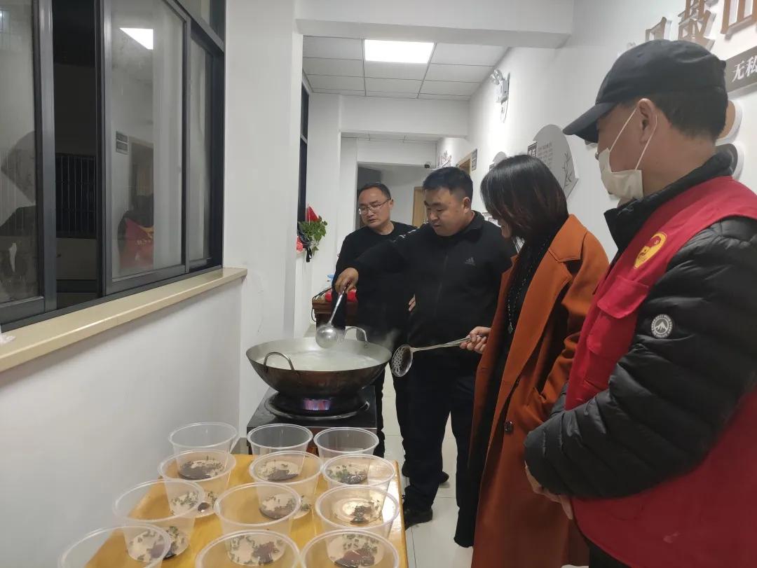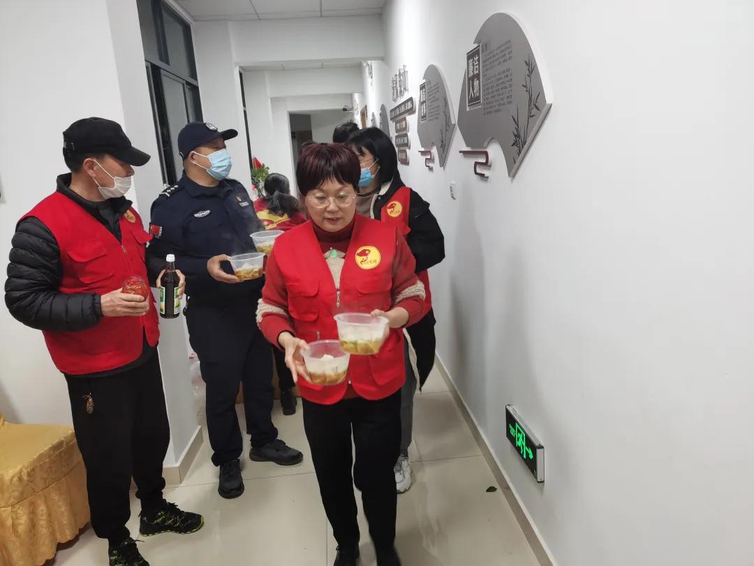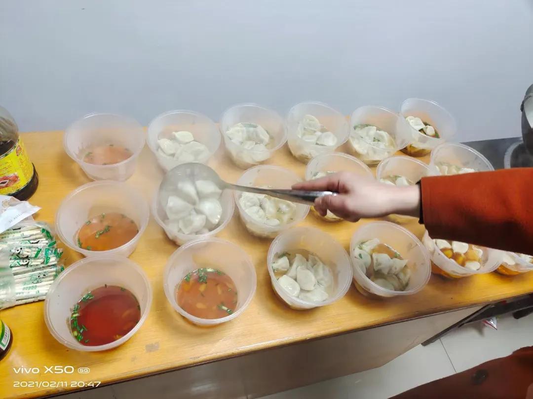 不同地域,不同习俗,过年的习惯也不 一样,安徽人都有除夕夜吃饺子的习惯,寓意是取新旧交替“更岁交子”的意思。又因为白面饺子形状像银元宝,一盆盆端上桌象征着“新年大发财,元宝滚进来”之意。志愿者早早准备好饺子,给环卫工人送上一碗碗热腾腾的暖心水饺,让他们深深感受到家的温馨之情。