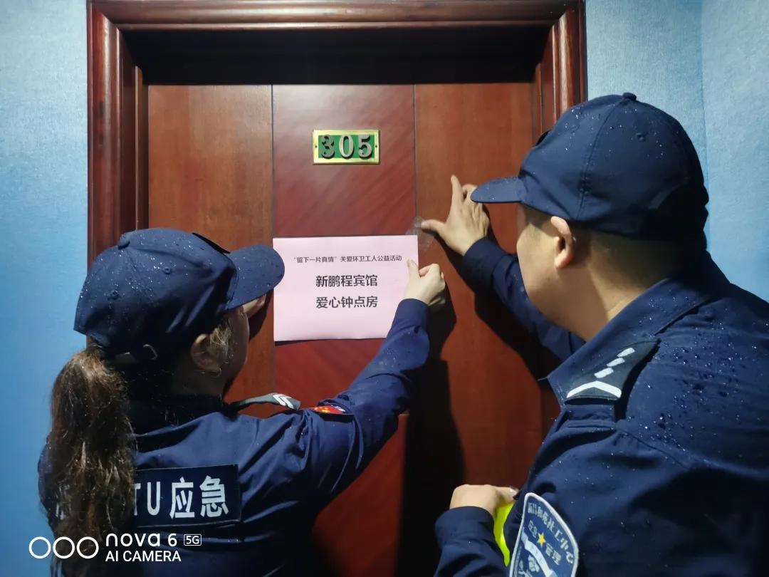 爱心宾馆——新鹏程宾馆为留新过年的环卫工人在规定时间内,开放两个包间免费洗澡,让环卫工人干干净净过大年,舒舒坦坦迎新春。