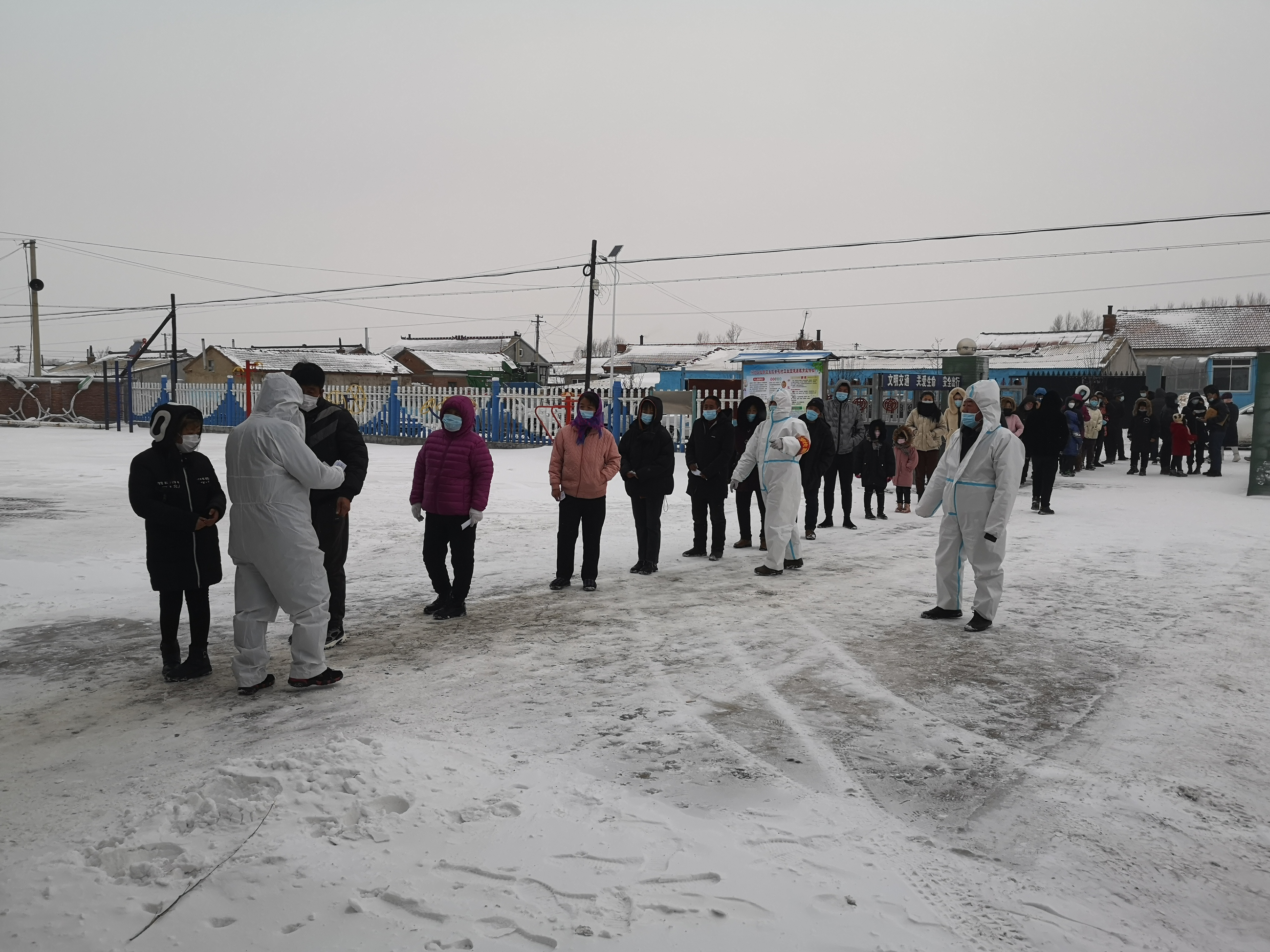陶家屯镇(2次)的核酸检测工作,从早晨7点多进入村屯一直工作到下午3点多才吃午饭。身着防护服,不能喝水,不能上厕所,这是所有志愿者潜意识里对自己提出的要求。腊月里的天气寒风刺骨,面罩结冰,志愿者们不惧寒冷、不惧危险依然坚持完成使命。陶家屯镇临近范家屯,密接人员可能会较多,队友们都很害怕,但是没有人退缩。他们心往一处想,劲儿往一处使,挨家挨户登记检测,做到不漏一户,不漏一人,让疫情防控工作做得更加精准到位。