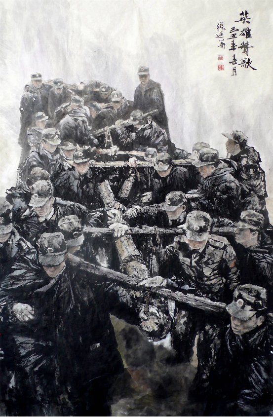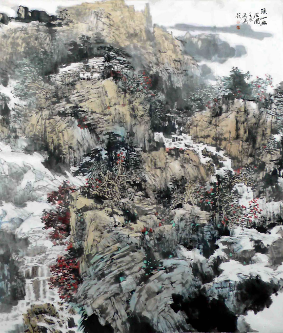 张延华的山水是一种写意与抒情,遗兴于高雅文化意旨下的表现。他的画,笔精墨妙,形式语言清晰而准确,境界高迈,理精于画,妙极山海。在延华的绘画中,总是一种指向高天的态势,会把人引入一种更高境界的特殊语言形式中。在这里,形式、境界、精神等内涵无不被表现得淋漓尽致,这是他以山水为素材来导演心灵述说的戏剧表现。所以欣赏延华的山水,一种崇高的文化精神意旨会在我们的心中油然而生。
