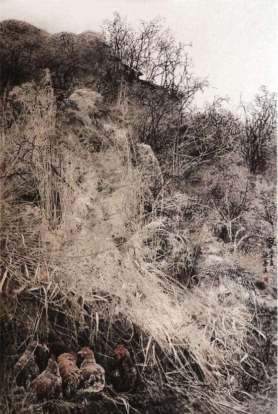 一言以蔽之,张延华的画充满了自然的蓬勃生机。这就表明,通过长期的艺术实践,延华已经把自己修炼成一位能够懂得中国文化精妙道理的人了。所以,他也就具有了超出一般人的特殊聪明才智——这是延华能够立足中国文化语境,把他所承接和理解的精妙文化道理表现为绘画,并以自己灵明秀出而清新刚健的气质灌注于他的绘画的缘由。所以,欣赏延华的绘画,我们也就自然而然地能够看到他的绘画笔墨犹如日月之明,他的绘画意味就像高山大海那样丰满多姿。