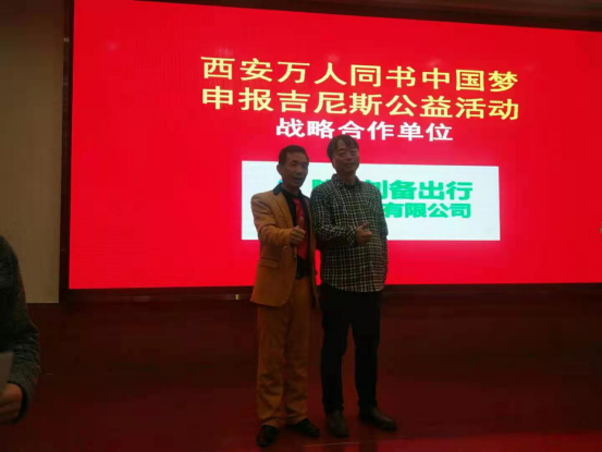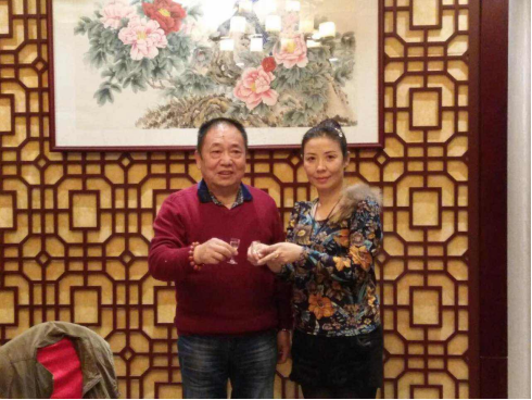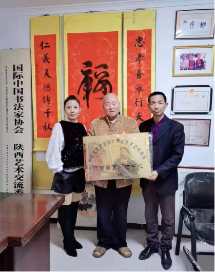 向荣誉社长戴希斌学**并合影留念 产品被西安喜来登酒店、航空公司、电视台等单位选为指定产品,同时被陕西省饭店协会作为旅游知名品牌向海内外推广,期间大力支持赞助书画和秦腔艺术的发展。