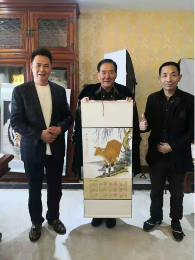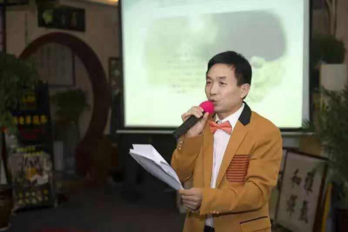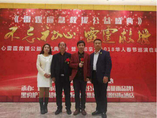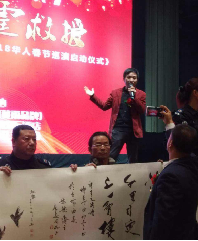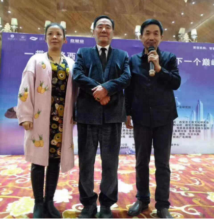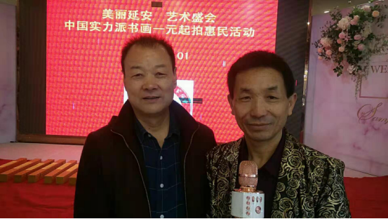 与铠达集团西商国际酒店董事长江德友、马氏集团总裁马胜利合影 2015年7月,在古都西安,他多次参加中实协文化惠民艺术活动,从一个观摩者到参与者、追随者,再到如今的首席双语金牌拍卖主持名家。从西安高速酒店、曲江会议中心、长安西北饭店到安康香溪文化旅游广场到山东潍坊国际艺术节、延安南泥湾红军小学和枣园1938文化广场再到龙首文玩茶城、南门外中贸广场每周一场的惠民义拍,春节前后泾阳茯茶镇、重庆磁器口木洞等地拍卖;白鹿仓景区和每年曲江会展中心国际奇石展,国内贵阳、汝州、湖北十堰、上海、深圳、港澳台及海外新马泰和一带一路的沿线国家,他主持过的公益慈善助残扶贫帮困义拍多达六百多场,为各地精彩纷呈的文化惠民书画巡回拍卖主持助力,所到之处无不让人啧啧称赏,最忙的他也成为人们心目中最好的双语金牌爱心拍卖师!
