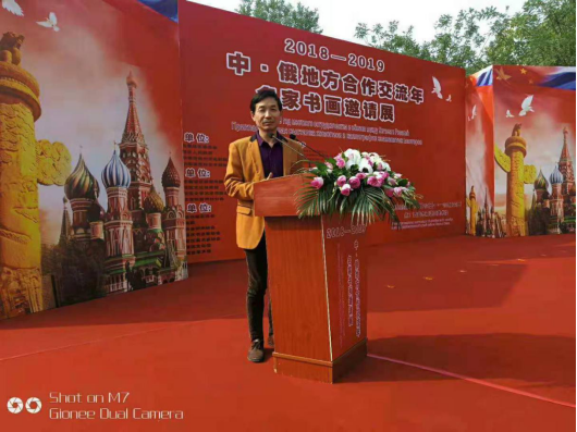 2018-2019中俄地方合作交流年名家书画邀请展现场 徐振清生于中国红枣之乡渭南大荔县,出于对语言文学的热爱,80年代中期,徐振清年就读于西安翻译学院,编著有《慧源一点通英语速成》、《国学书画双语速成》,并长期致力于国学书画中西兼修速成教育研究及推广。在启迪学生智慧、培养兴趣、点播方法和融会贯通方面效果奇特。