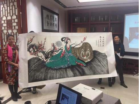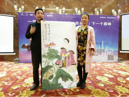 一带一路下一个巅峰文化经济论坛王秀润展示并赠送作品 妻子王秀润:德艺双馨的书画新秀,弘扬中华忠孝文化及新时代真善美的践行者,2013与丈夫同获文化创作金奖与艺术杰出传承人 。