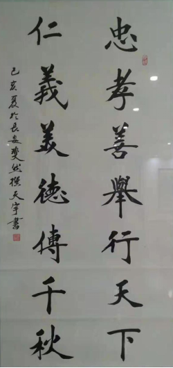 《忠孝善举行天下、仁义美德传千秋》父亲徐振清撰联儿子徐天宇书 儿子徐天宇:少年强则国强!传承艺术与道德复兴文化与文明征途上的接力者。少年强则国强!少年智则国智!少年进步则中国进步! 少年的徐天宇,西安市美协会员,作为中实协文化惠民艺术传承道路上的新一代接力传承者,从小热爱中国文化、热爱祖国、品学兼优,在学多次被评为三好学生、雷锋式好学生、优秀学生干部、感动中国人物观后感演讲比赛优胜者。他热爱文学与书画,作文时常被老师评讲,有多篇作文在校刊和报刊发表,志存高远,立志为中华文化复兴、祖国繁荣强盛、领土完整统一发奋读书。