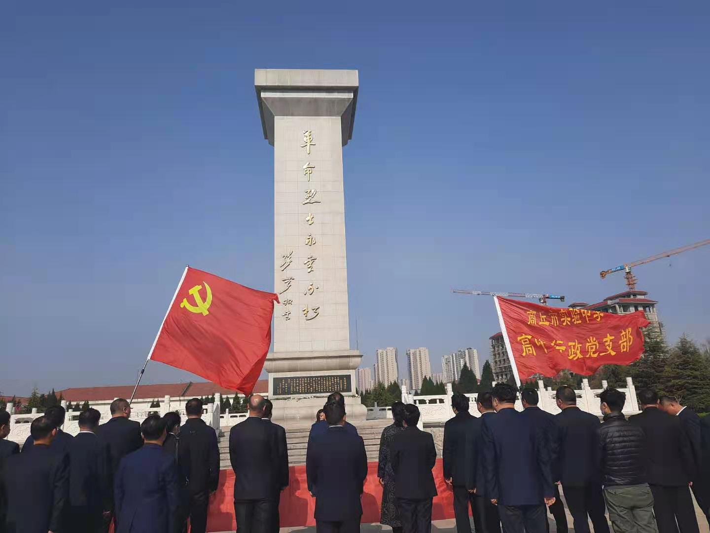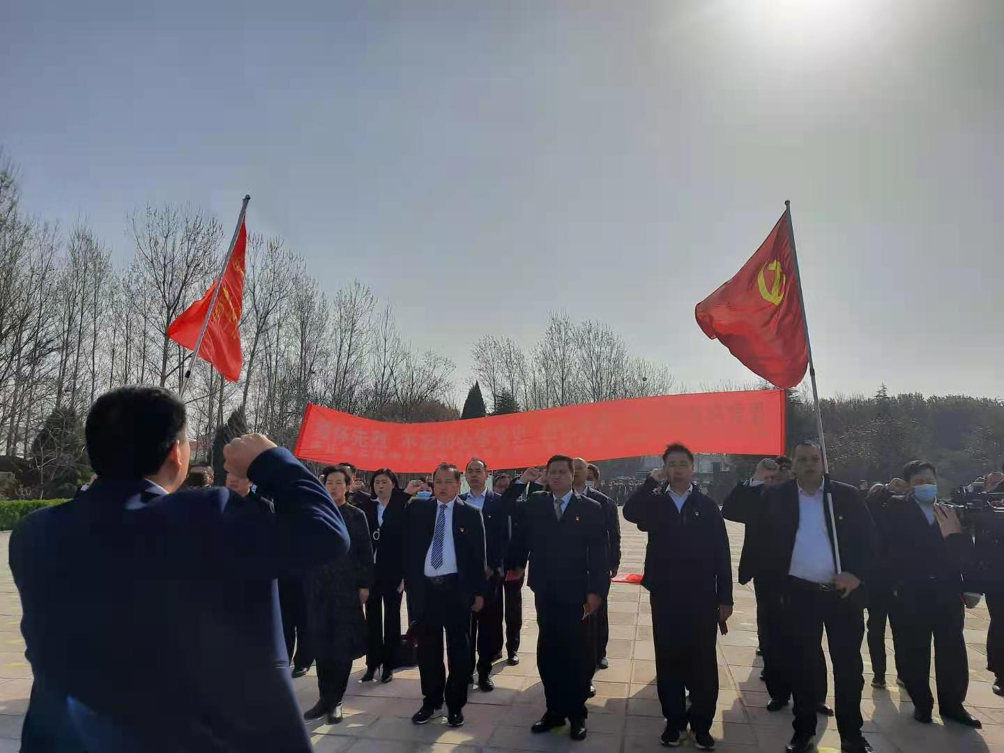 “我志愿加入中国共产党,拥护党的纲领,遵守党的章程,履行党员义务,执行党的决定,严守党的纪律,保守党的秘密,对党忠诚,积极工作,为共产主义奋斗终身,随时准备为党和人民牺牲一切,永不叛党……”铿锵有力的入党誓词响彻在商丘市革命烈士陵园内。 ![]() 敬献花圈 3月28日上午,商丘市实验中学的党员们神情肃穆地站立在革命烈士纪念碑前,重温入党誓词,再读党的章程,缅怀革命英烈,不忘初心使命。这是该校高中行政党支部的一次主题党课活动,校长黄述学、支部书记吕鑫,以及高中行政党支部的党员们参会。 ![]() 重温入党誓词 活动开始,黄述学、吕鑫向革命烈士纪念碑敬献花圈,全体党员装严肃立,向烈士纪念碑行注目礼。随后,支部宣传委员刘友亮带领大家重温入党誓词,支部纪检委员蔡学斌带领大家诵读党章,支部党员代表代洁讲述李德合烈士可歌可泣的英雄事迹,支部党员代表梁轼瑞以“缅怀革命先烈,感恩幸福生活”为主题谈感想、表决心。 ![]()