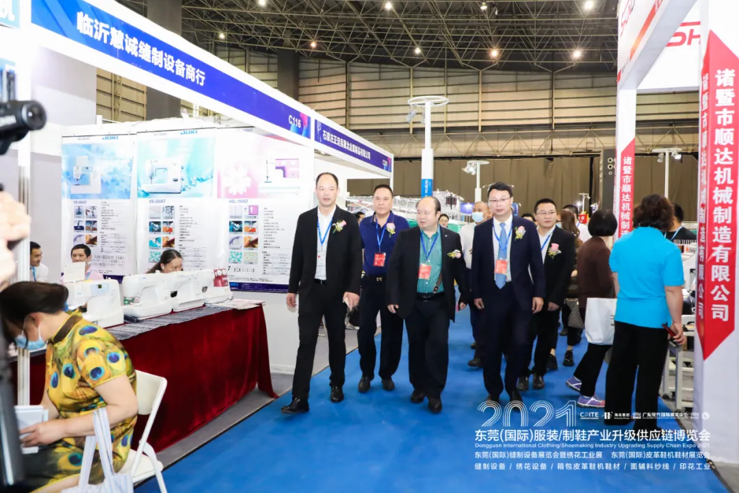 贴近产业集群,直达终端用户。 2021东莞(国际)服装/制鞋产业升级供应链博览会背靠广东集群,作为最贴近产业集群地的重要资源整合平台,也一直在积极推动新技术与制造的结合、助力产业上下游联合、创新、协同发展,引领和推进数字化驱动的新产业生态体系和价值体系的构建,为东莞服装制造业的发展全面赋能。将为东莞、为厚街、为行业,带来更开拓的发展渠道,更高效的增长模式。 本届展会占地面积25000平方米,有近400家参展商、包括缝制设备、绣花设备、箱包皮革鞋机鞋材、流行面辅料、纱线、纺织品印花设备等,让观众对行业新技术、新工艺能够精准的一站式对接,为产业链升级提供完美的交流平台。 02 嘉宾出席 多地政府领导、行业协会领军代表出席大会开幕式。