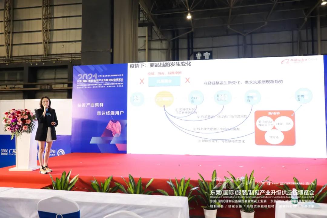 深缝协秘书长朱娲担任2021东莞(国际)服装/制鞋产业升级供应链博览会开幕仪式的主持人。