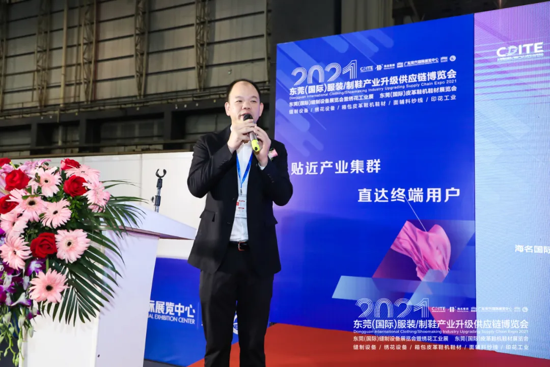 展商代表浙江镨美科智能刺绣设备有限公司 总经理 方狄永先生致辞 智能设备解放人工是行业大趋势,我们希望能给客户带来创新设备提升效率与质量。东莞展的召开,也是我们协同资源、变革发展的突破口。祝贺东莞展顺利召开!我们会上见。