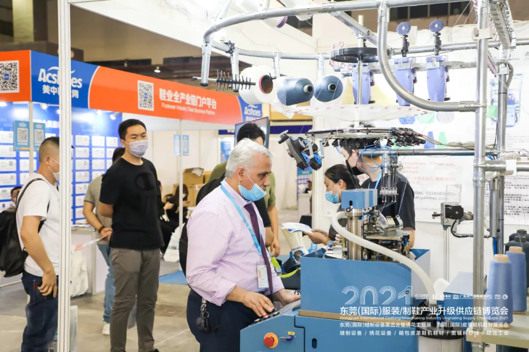 除此之外我们也特别感谢:麦加网箱包产业链平台和美中鞋业网 对于东莞服装制鞋展在东莞厚街落地生根付出的不懈努力,并为其颁发最佳合作奖。 03 精彩展会 2021东莞服装制鞋展涵盖缝制设备暨绣花工业技术展、箱包皮革鞋机鞋材展、纺织品印花工业展、流行面辅料及纱线展、服装订单对接区五大特色主题展,一站式联动服务纺织服装全产业链,构建时尚定制品牌和产业链企业的商贸对接平台。