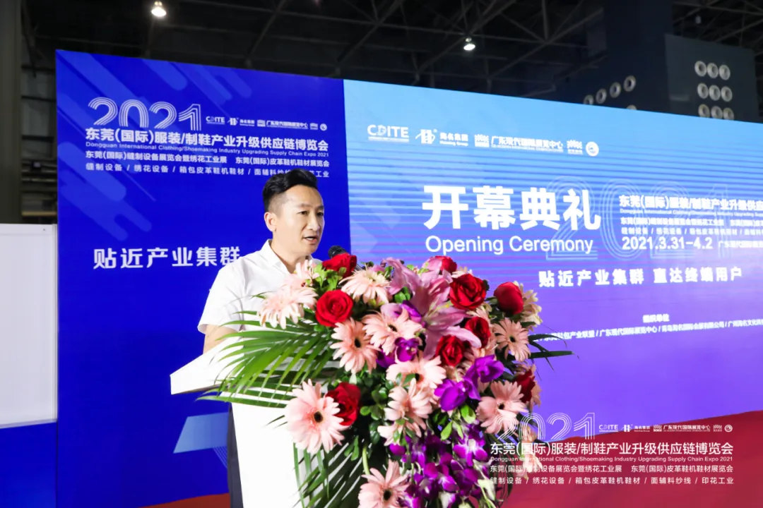 主办单位海名国际会展集团董事长门振春先生为大会致开幕辞 在推动服装/制鞋产业升级、新旧动能转换中,东莞服装制鞋展秉承“传承经典、守正创新”的理念,贴近集群、深挖客户需求,致力于做行业需要的专业展会。
