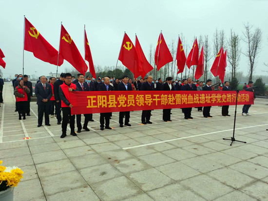 4月2日,驻马店市政协副主席、正阳县委书记刘艳丽带领县四大班子成员、县直各单位主要负责同志到雷岗血战遗址开展“追寻红色足迹、感悟党史辉煌”教育活动。县领导边镇西、李保国、胡敬忠、李迎春、赵向阳、朱东升、王振伟、黎光华出席活动。正阳县义工联合会会长郑亮带领20多名义工党员志愿者随同参加活动。