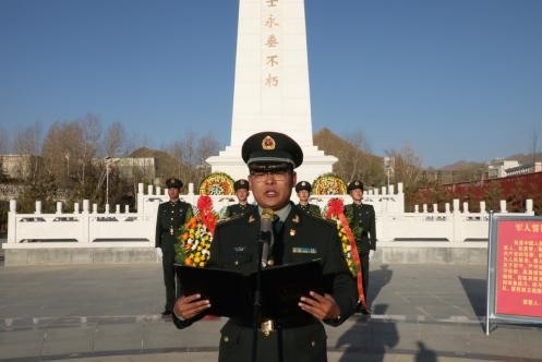 早上9时许,烈士纪念碑下,“铭记历史,展望未来,我们要弘扬革命先烈精神,牢记使命、坚定信念,加强练兵备战,苦练杀敌本领,勇当先锋、敢打必胜!”在该部教导员索朗贡布的激励声中,官兵们全体官兵以崇高的敬意向革命烈士献花圈、默哀、鞠躬。随后,在营长陈祖元的带领下,全体官兵面向烈士纪念碑庄严重温军人誓词。官兵们铿锵有力的誓言仿佛跨越时空,与革命先烈进行对话。