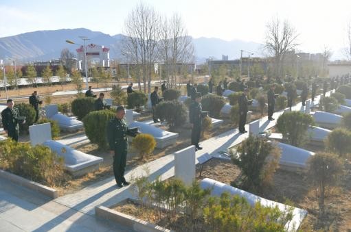 4月1日,西藏77671部队组织全体官兵徒步行进至此,开展清明祭扫活动缅怀为保卫国家和人民生命财产安全、维护社会稳定而光荣牺牲的675位长眠于此的先烈。