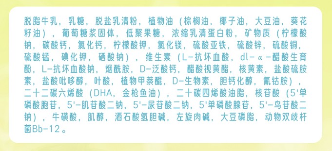 奶基 根据爱荷美的成分表可以看出爱荷美全阶段选用脱脂牛乳作为奶基原料。