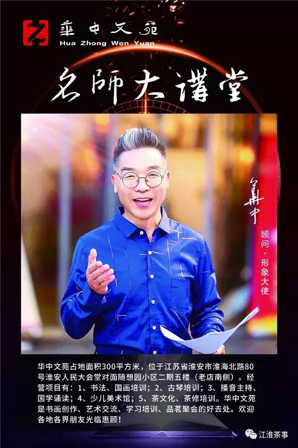华中文苑占地面积300平方米,位于江苏省淮安市淮海北路80号淮安人民大会堂对面随想园小区二期五楼(老店南侧)。经营项目有:1、书法、国画培训;2、古琴培训;3、播音主持、国学诵读;4、少儿美术馆;5、茶文化、茶修培训。华中文苑是书画创作、艺术交流、学习培训、品茗聚会的好去处。欢迎各地各界朋友光临惠顾!