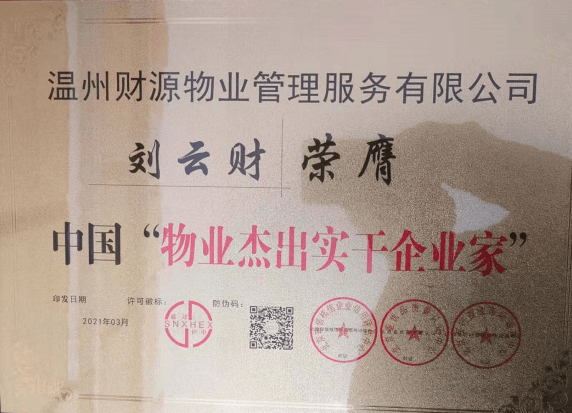 俗语说,万事开头难。创业之初刘云财就遭遇了重重困难。由于物业管理竞争激烈,很长时间都没有接到业务,公司也面临着资金紧缺,技术人员难找等问题。但军人出身的刘云财不被轻易被打倒。他下定决心迎难而上,终于等来了机遇,公司先后承接了柳市世纪商务大厦、温州名门世家大厦等物业管理服务业务。但即便如此,一切都是从零开始,刘云财对当初的情景仍旧印象深刻。他回忆道,公司刚进入世纪商务大厦时,小区内环境卫生状况比较差,垃圾是随处可见,杂草丛生,公司见此情形立即组织人员进行清除垃圾和除草,将小区打扫得干净整洁。刘云财表示,物业公司可以改善小区居住环境,提高业主的生活质量,这样一来,也会有更多的人愿意来这购房安家,小区房子随之就升值了,这是皆大欢喜的事。物业公司的付出也就变得有价值有意义。经过刘云财的不断努力开拓进取,公司也取得了不俗的成就。目前,公司已经具有国家三 A 级物业管理行业资质、国家一级物业管理行业资质,可承接商务区、体育场馆、大专院校和政府机关办公大楼等物业管理业务。除此之外,公司也收获了“诚信经营示范单位”“重合同守信用企业”“AAA级质量服务信用企业”等资质和荣誉,董事长刘云财也获评乐清市“双十佳优秀管理员”及“诚信经理人”等称号,公司所管理的柳市镇长虹花园新村小区先后被中央电视台、浙江省电视台、温州电视台、乐清电视台和《乐清日报》等多家新闻媒体多次进行报道。