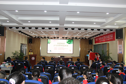九江市自然资源局工作人员在活动现场向学生们发放了《自然资源知识宣传手册》。九江市自然资源局地矿工程师、庐山世界地质公园地质专家熊卫强,在兴中德育大讲堂为学生们带来了有趣又实用的《地球故事》讲座。熊老师通过PPT,直观的图片、简约的文字向孩子们介绍了地球早期生物历史和地球上人类出现的历史,教育孩子们要珍爱地球,与大自然和谐相生。五年级学生代表号召全体学生保护地球,发出“爱家乡、爱祖国、爱地球”的倡议。