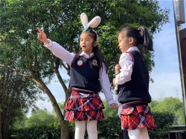 杨绛先生说:“读书不苦,不读书的人才苦。”阅读开阔眼界,阅读使人明智,阅读改变人的气质。为进一步激发学生读书的兴趣,营造浓厚的读书氛围,提高学生审美修养和人文底蕴,在世界读书日来临之际浙江省武义县古竹中心小学开展了甜味大阅读活动。 好玩有趣的“角色扮演 好书推荐”活动深受学生喜爱。同学们阅读经典,通过服装、饰品、道具来扮演故事中自己最崇拜的人物角色,讲述书中最精彩的故事片段,向同伴推荐一本本有营养的好书。 一年级三位可爱的小朋友扮演成三只可爱的小兔子,用甜甜的声音讲述着兔妈妈与兔宝宝的故事,让同学们感受着暖暖的爱中向大家推荐了故事绘本《猜猜我有多爱你》。