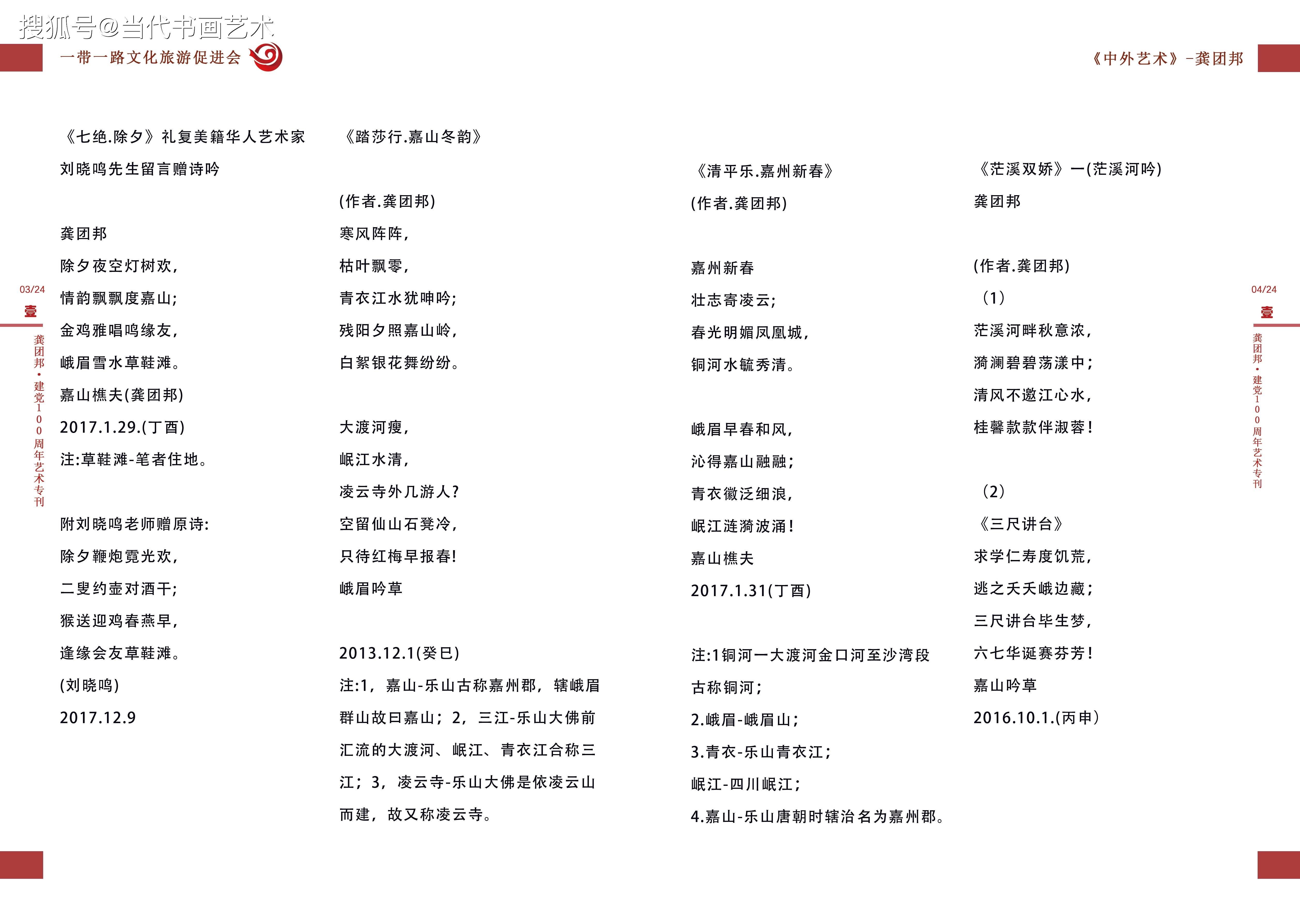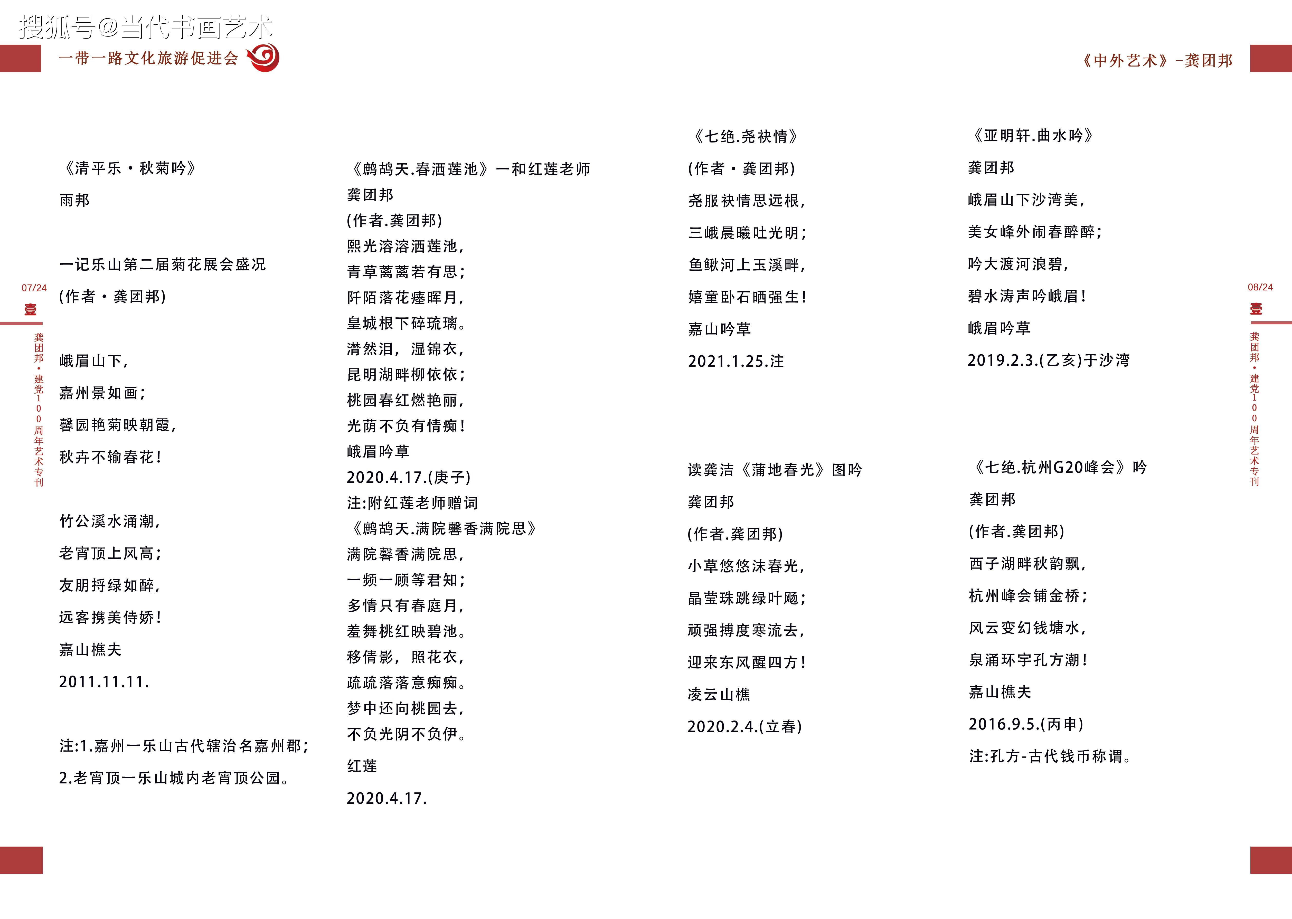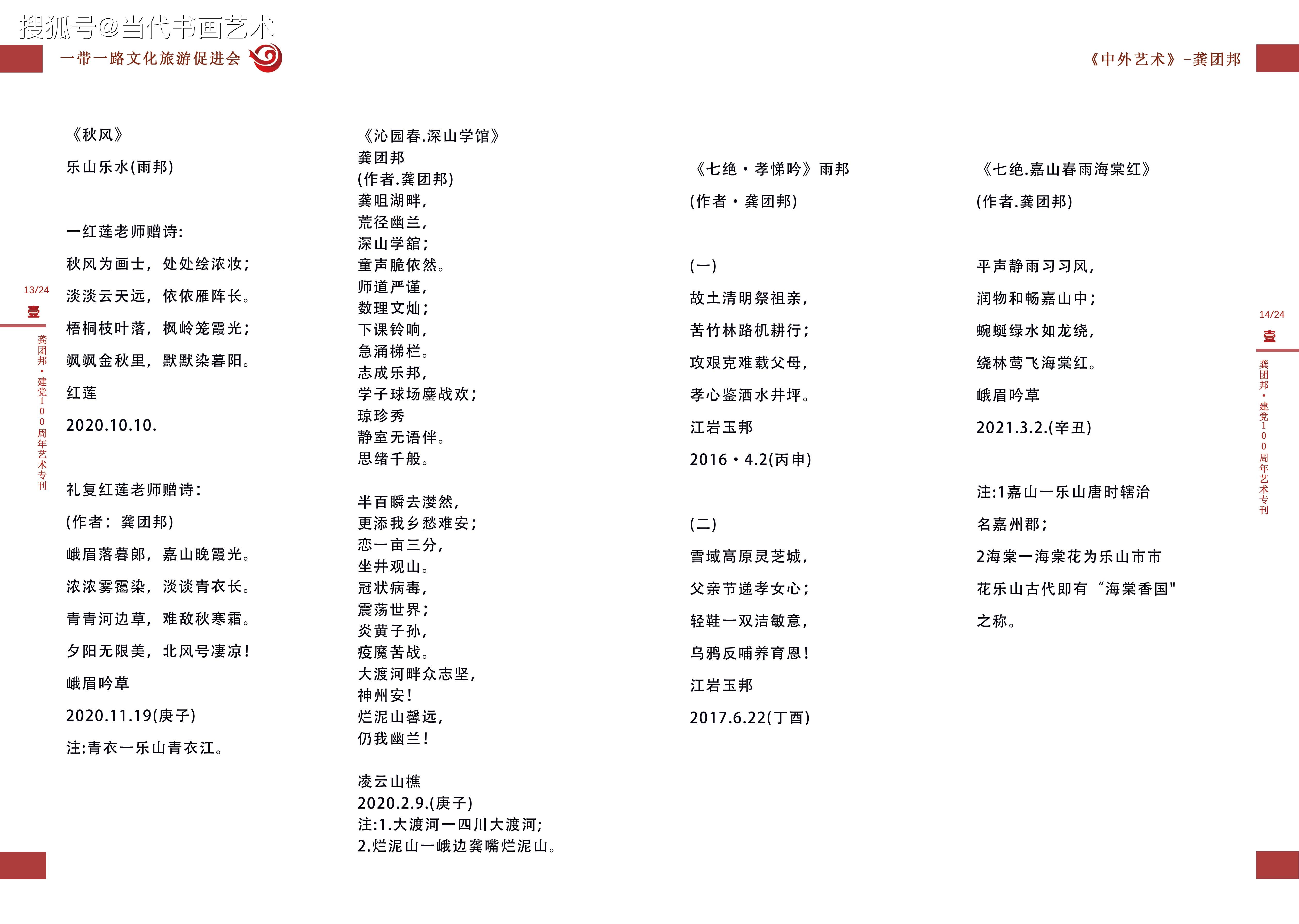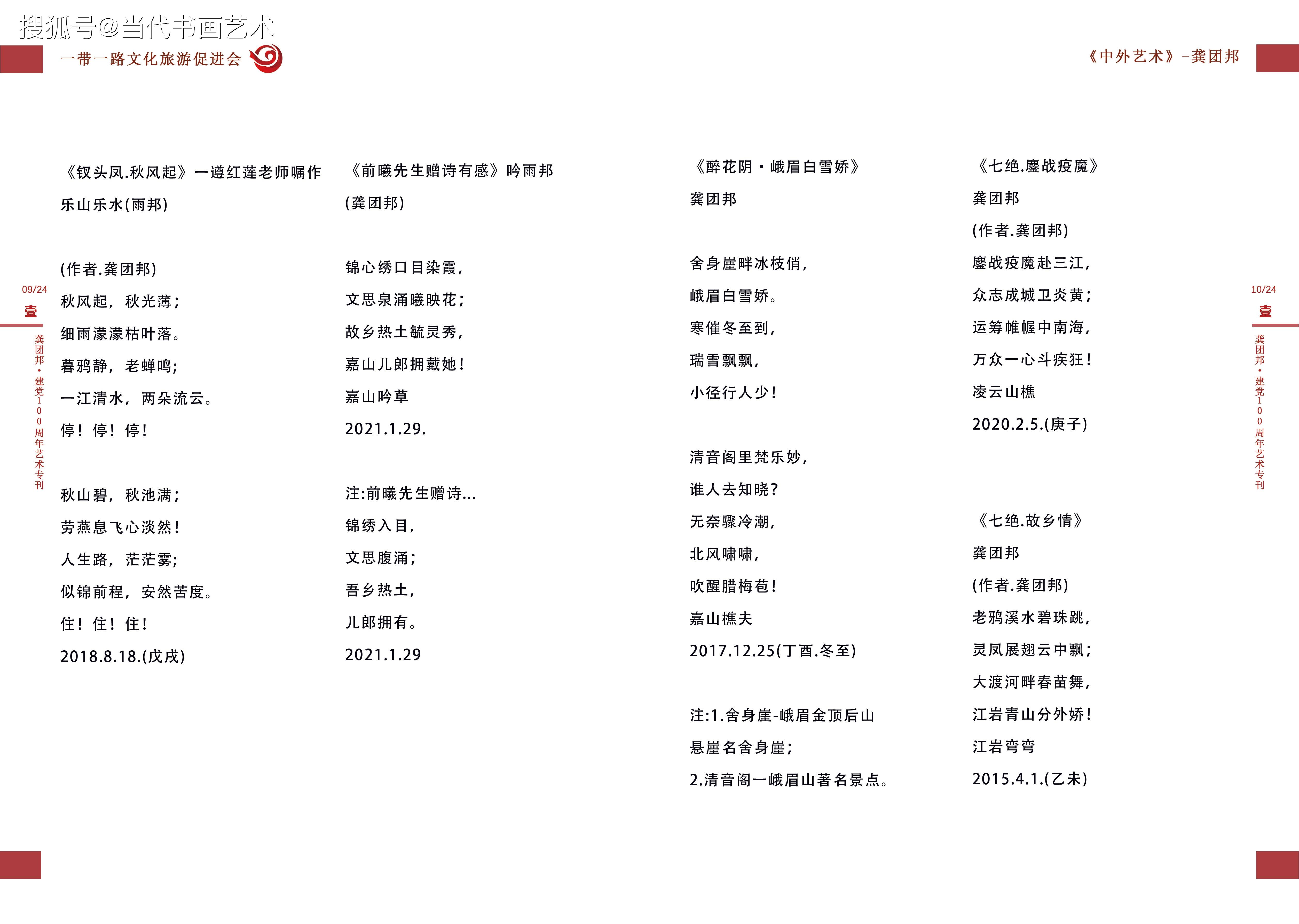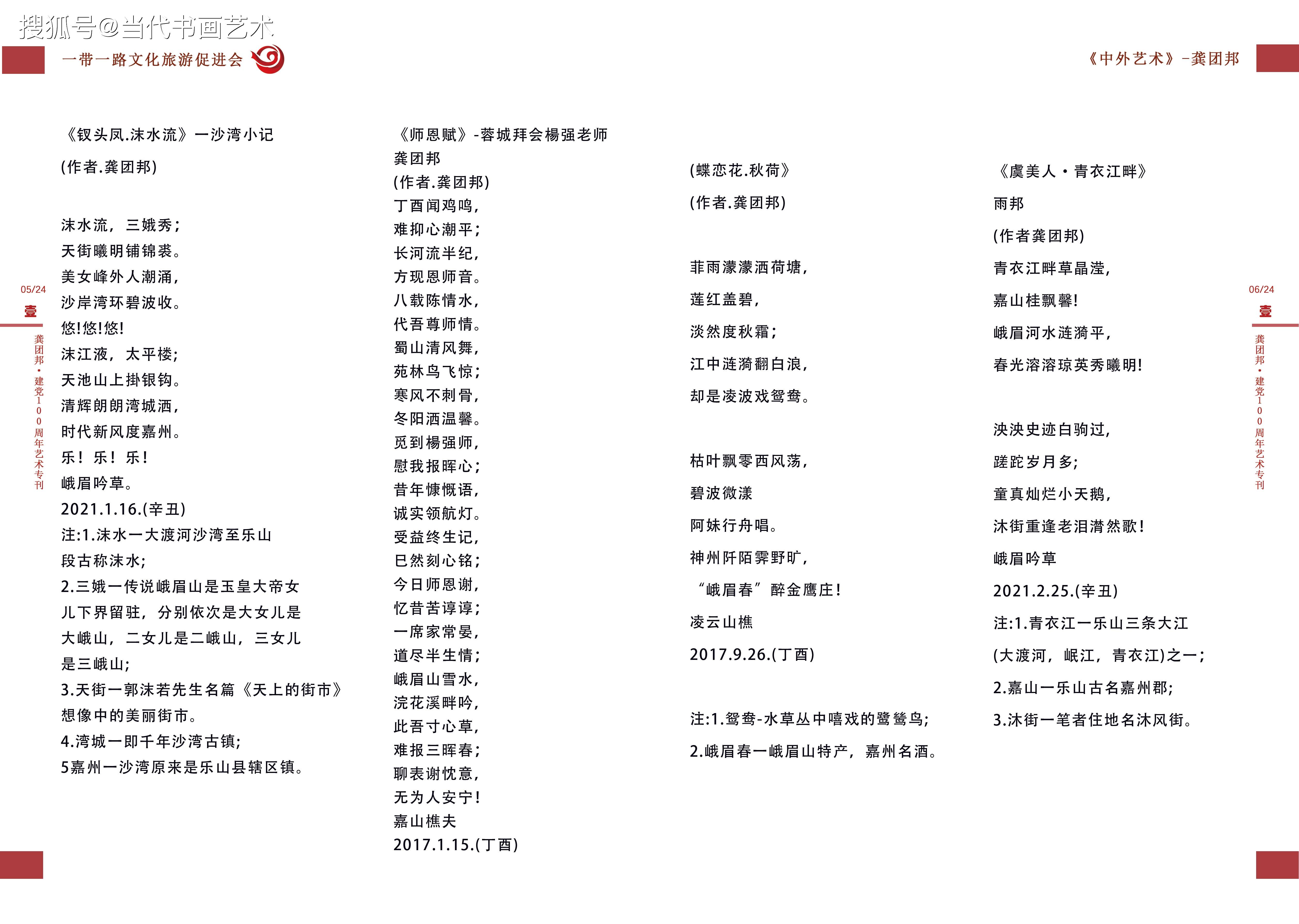 《美诗绩超群雅词庾开府》 ——记诗词艺术家龚团邦 龚团邦,著名诗词文学艺术家,字杨铭,1952年生,四川省乐山市沙湾区老鸦乡人。世人皆知有郭沫若,但鲜有人知沙湾区。沙湾即是郭沫若故里。龚团邦的诗词艺术启蒙,便是基于沙湾深厚的沫若文化氛围。龚团邦幼年就读于沙湾小学,这所学校特有的沫若诗词文化积沉,对龚团邦的艺术启蒙起到了十分重要的熏陶弓|领作用。 诗词作为中国的艺术瑰宝,要精通此艺成为大家,绝非容易。所以说在诗词文化源远流I长的历史长河中,不缺少随口吟咏的初级爱好者,但是名家却常常经年不遇。诗词是文学之珠,有成绩有才气的诗词名家,是文学朝圣群体里的珍得真经者。 不可否认,生于文学名家故里,又有深厚之学积淀,对诗词艺术倾一腔心智的龚团邦,即是一位珍得真经者! 要理解龚团邦在艺术界的诗词造诣,可从三个层面体验他卓著的艺术成就。 第一个层面是“工整”。轻诵:“西子湖畔秋韵飘,杭州峰会铺金桥;风云变幻钱塘水,泉涌环宇孔方潮。工整,首先是押辙合韵。龚团邦做诗,以正规、正统、正章为根本,他深谙诗词的韵律之美,酿诗酝词,不信口而出,极尽推敲之功,以达古典之风。诗中一个“飘”字,恰如“春风又绿江南岸”中的“绿”字,此是艺术精炼的字眼,也是呕心巧成的机缘。炼一字、而成诗词之眼,诗意盎然,字精句工。龚团邦极尽断须之功,依文学基础功力与文学创新思维的合力做诗。所以读龚团邦的诗,古典意味浓厚,炼字精致,虽叙当今之事,却卓持古典高品,这就是龚团邦对诗词艺术创作规律和章规有深刻把握能力而成的工整之果。 第二个层面是“意境”。意境是诗词的精神核心,没有意境难成诗意,意境不高辞名难显。寻遍词林,忽见龚团邦的《沁园春嘉山情韵》如沙中黄金,生辉耀眼!本想摘一小段录赏,不成想却句句难舍,唯贴全文,以示敬仰:“嘉山凌云,乌尤茂林,峨眉金顶;涛涛v大渡水,蜿蜒古城。竹溪垂钓,海棠怡情,铁牛门浪,斑竹湾行,老宵顶眺,赏嘉山乌尤凌云。翡翠矣!观仙境秀色,名山风韵!长伴浦江春秋,早赏得霓虹华灯够,逍.遥乐山游。大渡波涌,挥洒江流,泼彩.明快,青金势优。墨韵狂舞,凌云山前佛祖笑,三苏楼,峨眉春醉客,韵飘嘉州! 第三个层面是“功绩”。李白、杜甫、李清照..这些人之所以成为诗词巨匠,原因很多,但有一个共同的原因都是文学史上立下了“功绩”之人。龚团邦之所以堪称诗词名家,也是因其功绩不凡。首先,他对诗词艺术有深刻的继承之功,其次,他对诗词艺术有创新之绩。如是,诗词艺术没有断代之遗憾,经由龚团邦的继承和发展,中国古典诗词仍旧是煜煜光彩,仍旧能陶冶情操,慧人心智。 龚团邦是中国东坡诗社社员,中国人民艺术家协会会员。他的诗词作品在人民网、新华网、中国书画网、中华丹青网, 《深圳法制报》、《凌云吟》、《中国风》等媒体频频刊发,这即是功绩的积累过程,也是功绩的显世佐证。云中谁寄锦书来,雁字回时,月满西楼。这是李清照的触景生情。“金樽尽,玉杯残,樵夫半醒凭倚栏!”《鹧鸪天.和诗人金保先生》,这是龚团邦的率真自然。龚团邦的诗词,从历史的云烟中脱颖而出,在艺术新时代又立高峰!(文艺评论家.史峰2017年8月29日)