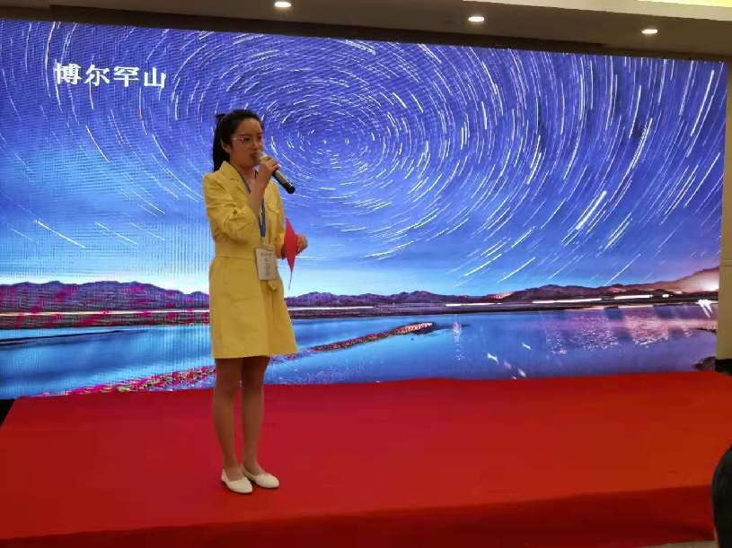 赛里木湖景区代表正在作现场推介 “赛里木湖是新疆海拔最高、面积最大的高山冷水湖。景区集雪峰冰川、高山湖泊、河流湿地、五花草甸地等自然景观于一体,如一颗璀璨的蓝宝石高悬于天山之上,被称为‘大西洋最后一滴眼泪’。世界上有一种蓝叫赛里木湖蓝,7000万年的等待,只为遇见你。浙江的朋友,西域净海,天山圣湖欢迎您。”赛里木湖景区推介人吴小莹发出邀约。