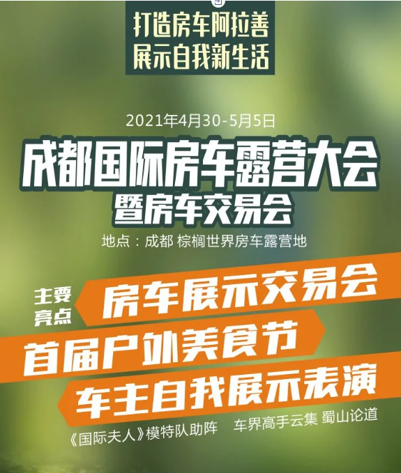 4月30日成都房车露营大会开幕式 同时2021国际夫人大赛四川赛区启动仪式, 也将在棕榈房车世界拉开帷幕
