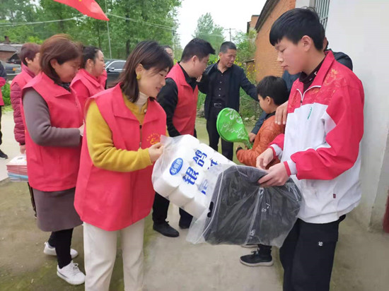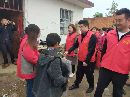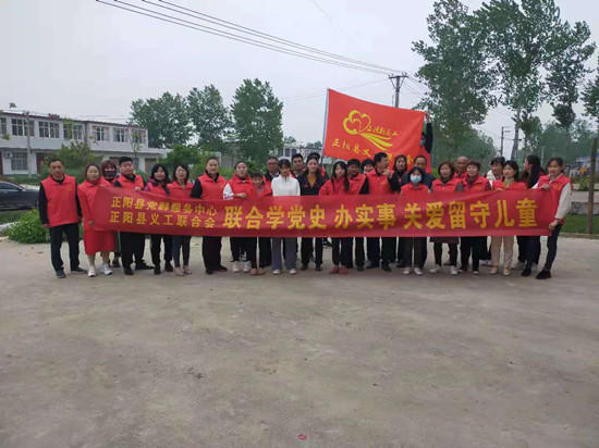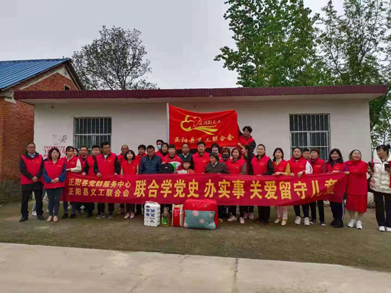 4月25日主题党日,正阳县党群服务中心联合正阳县义工联合会的党员志愿者和爱心人士来到永兴镇高庄村,走访慰问留守儿童。