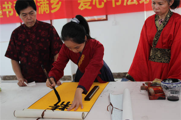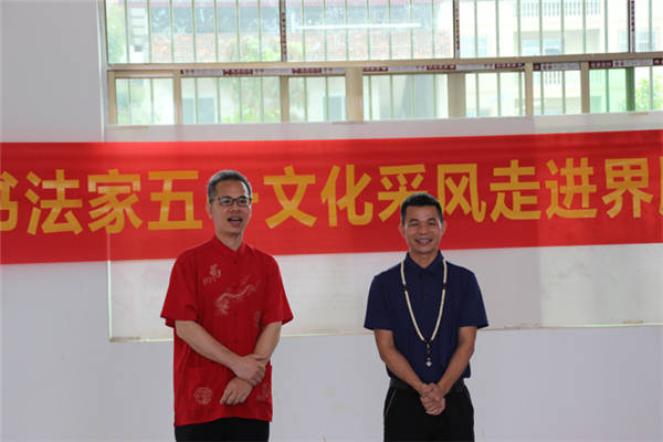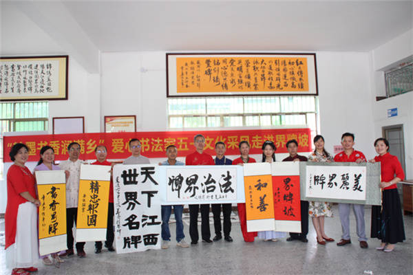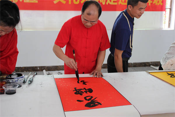 活动现场 张春梅/摄影 此次活动由界牌坡乡贤书画艺术家覃勇老师发起,他是从界牌坡走出去的文化名人,专业从事书画教育事业,虽然长期在大城市工作,却常常心系家乡,时时关注界牌坡的建设与发展,经常回村看望乡亲们。当覃勇老师得知界牌坡被江南区列为江西镇首个文化教育旅游产业建设为主的新农村建设典型后,就利用闲暇时间挥毫泼墨,捐赠了一批书画作品装扮村里新建的党群文化服务中心。