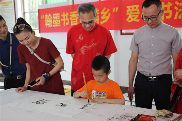 小书法家也现场挥毫泼墨 张春梅/摄影 据界牌坡乡贤参事会会长覃来庆介绍,界牌坡已经被江南区列为江西镇首个文化教育旅游产业建设为主的新农村建设典型。目前,界牌坡因地制宜、统筹规划,先后投入50余万元,用于界牌“四微”建设。经过村民的共同努力,界牌坡党群文化活动中心、篮球场、休闲广场等基础配套设施建设“拔地而起”。如今的界牌坡巷道整洁,绿树成荫,村民的文明意识不断增强,村风村貌焕然一新。