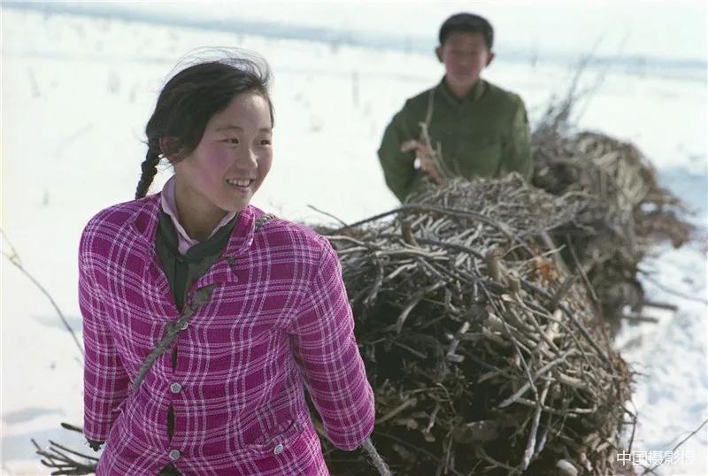 1980年 辽宁新宾永陵 冬日里拾柴禾的小女孩