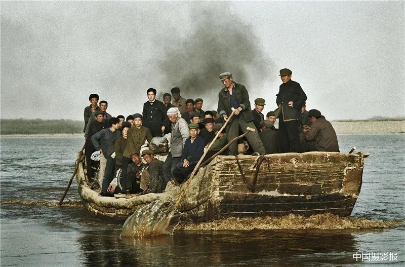 1980年 山东鄄城 黄河中原摆渡的农民