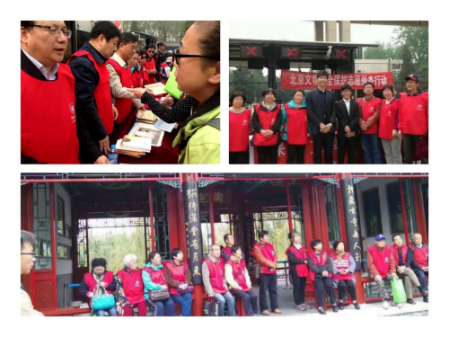 2015年4月纪念“北京市文物安全保护志愿服务行动启动一周年”活动和文保志愿者参观文保单位革命史展览活动的照片! “文物保护,从我做起!”作为“传承华夏史篇·文保志愿先行——北京文物安全保护志愿者服务行动”的重要组成部分,用实际行动保护首都文物,传承历史文化。志愿者精神和行动已经深入人心;影响京津冀并辐射全国。纪念活动它既见证了文保活动的延续,也激发了的公民的责任感和民族荣誉感。每一年的活动不仅是对长期坚守在文物保护岗位上的志愿者给予精神上的鼓励和肯定,也是对北京文物安全保护工作的延伸与成果的展示,更是对全社会文物安全保护意识进行全方位的提高。