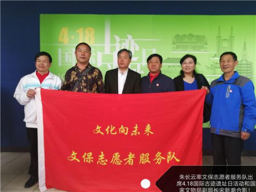 2019年4月18日是国际古迹遗址日也是“文保志愿者日” 文化向未来文保志愿者服务队发起人朱长云率团出席本次活动,出席活动的文保志愿者有丁鋒、佟永先、孙晓玲、马立国老师。 活动中大家进行了广泛的交流,互相勉励;表示,一定要“不忘初心,守正创新”!坚持为保护文物做出贡献!