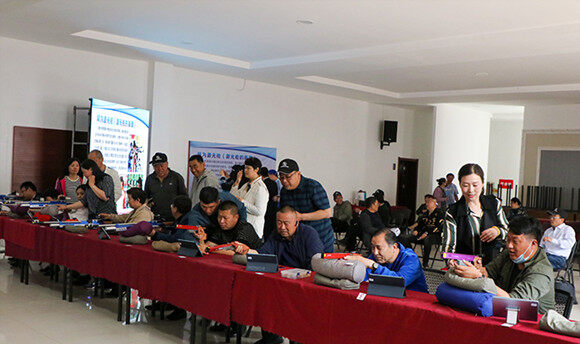 电子模拟射击体验现场 揭牌仪式结束后,相关人员一同前往射击体验场进行电子模拟射击体验。(兰传震) |