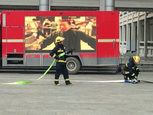 10:18,第二、第三场景演练依次进行。开发区医院医护人员现场演示了如何为伤员包扎伤口、徒手心肺复苏等急救方法,普及了急救知识及灾后卫生防疫知识。开发区消防救援大队人员进行了灭火演示,向师生们讲解不同场合、不同情况下避震逃生知识、逃生路线和就近选择避难场所,联合医护人员模拟营救高楼被困人员演练。